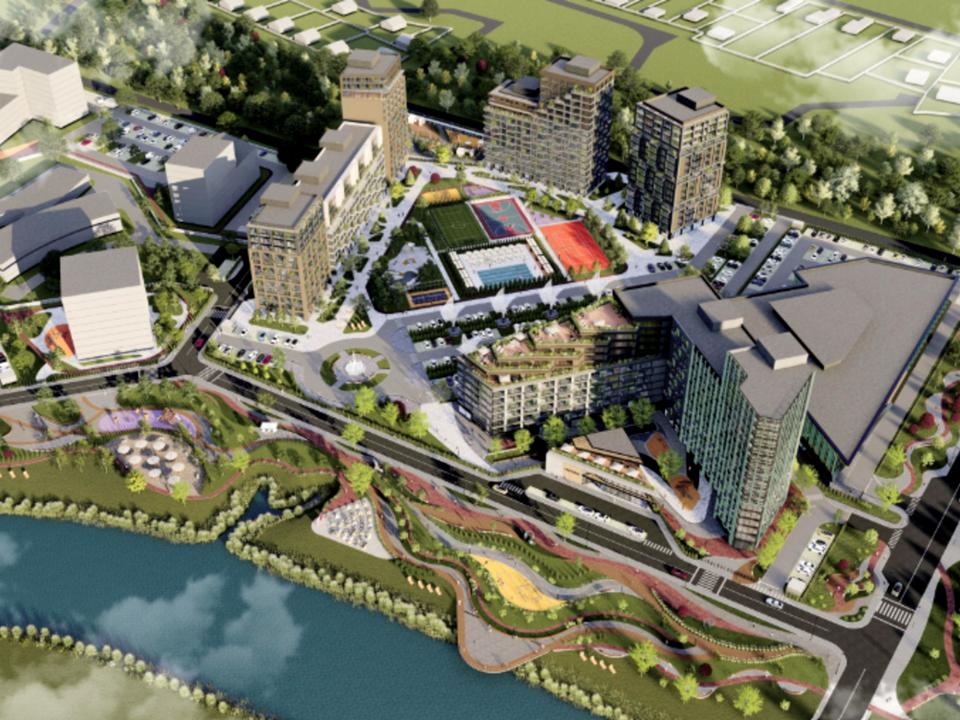 Власна унікальна інфраструктура комплексу включатиме: ТРЦ, дитячий садок, школа, спортивно-розважальна зона (включає басейн, баскетбольне та футбольне поле), ресторан та облагороджена набережна біля річки для вечірнії прогулянок.