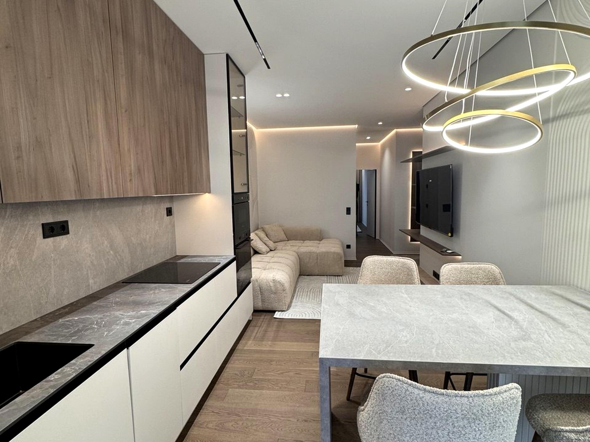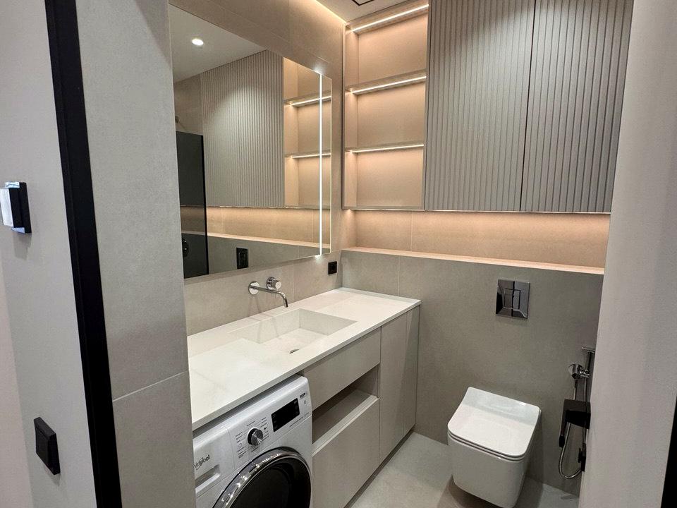 В квартире 1 комната, Технологія будівництва - Монолітно-каркасна, Тип будинку - Спец. проект. Планировка комнат Раздельная. Газа нет, кухонная плита электрическая. Есть горячая вода. Есть отопление. В квартире есть Телевизор, Спутниковое ТВ, Подогрев полов, Кондиционер, Стиральная машина, Душевая кабина, Холодильник, Посудомойная машина. Дом построен в 2025 году. Общее состояние квартиры - С ремонтом. Безбарьерность: вход в дом на уровне земли, парковочные места для людей з инвалидностью. Количество санузлов: 1. Работает без света - вода, отопление, интернет, лифт. Тип кухни - кухня-студия. Количество спален: 1. Комиссия за услуги 2 %