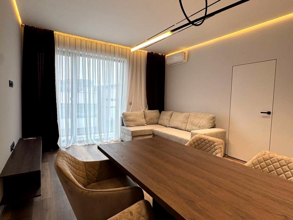 В квартире 1 комната, высота потолков 3 метра, Технологія будівництва - Монолітно-каркасна, Тип будинку - Спец. проект. Планировка комнат Раздельная. Газа нет, кухонная плита электрическая. Есть балкон. В квартире есть Телевизор, Подогрев полов, Кондиционер, Стиральная машина, Душевая кабина, Холодильник, Микроволновка, Посудомойная машина. Дом построен в 2023 году. Общее состояние квартиры - С ремонтом. Горячая вода - электрический бойлер. Количество санузлов: 1. Тип кухни - кухня-студия. Количество спален: 1. Комиссия за услуги 2 %