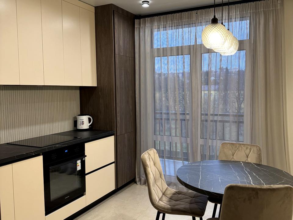 В квартире 1 комната, высота потолков 2.8 метра, Технологія будівництва - Цегляна, Тип будинку - Спец. проект. Кухонная плита электрическая. Есть балкон. В квартире есть Спутниковое ТВ, Подогрев полов, Кондиционер, Стиральная машина, Ванна, Холодильник, Микроволновка. Дом построен в 2025 году. Общее состояние квартиры - С ремонтом. Горячая вода - электрический бойлер. Количество санузлов: 1. Интернет оптоволоконный. Работает без света - вода, отопление, интернет, лифт. Тип кухни - отдельная кухня. Количество спален: 1. Комиссия за услуги 2 %