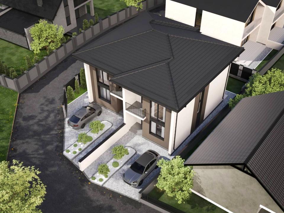 – Двір: викладений бруківкою, озеленений, підсипаний чистовий грунт, встановлений паркан від сусідів, центральний паркан з воротами та каліткою.