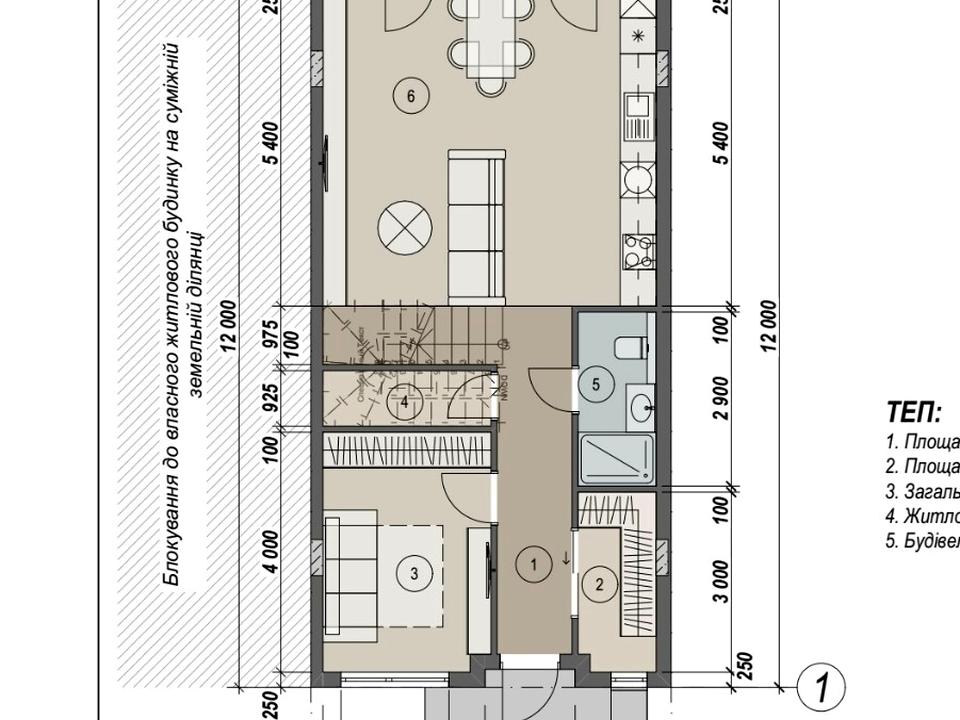 – перший поверх: хол, санвузол, комора, кухня-студія з виходом на терасу, спальня, гардероб.