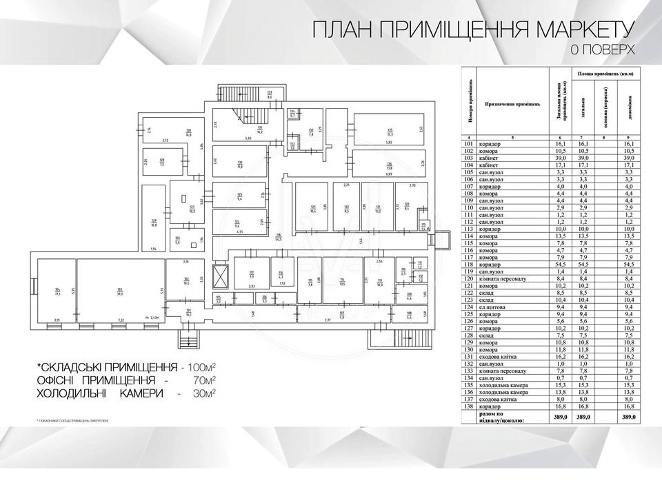 О - офiснi, складськi та холодильнi примiщення