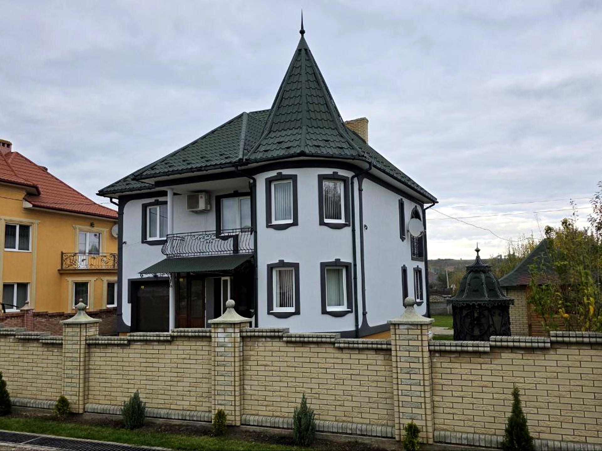 Всередині — окрема кухня, простора столова, лоджія, балкон, підвал, гараж на 2 авто.