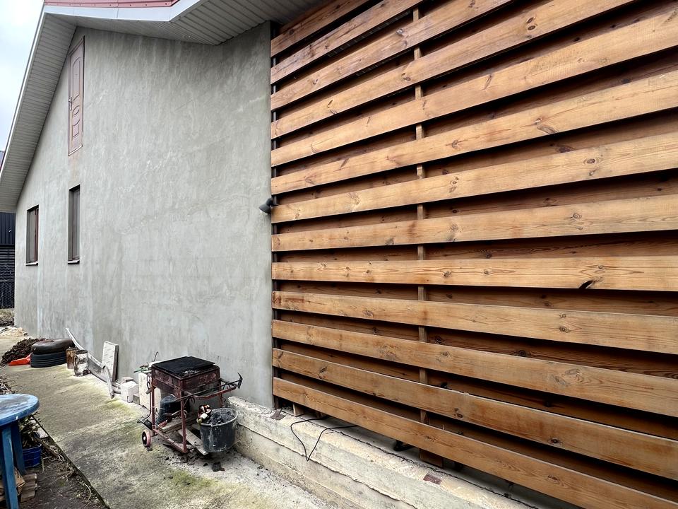 • Откатные ворота, заезд для трех автомобилей.