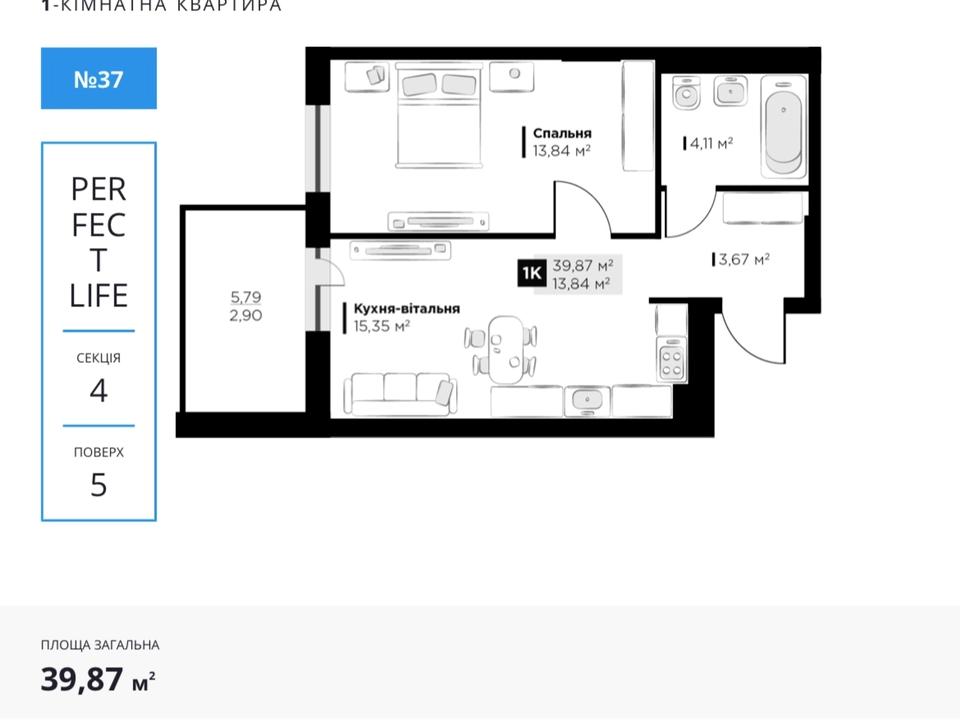 Продаж 1 кімнатної квартири у м. Винники ЖК Perfect Life