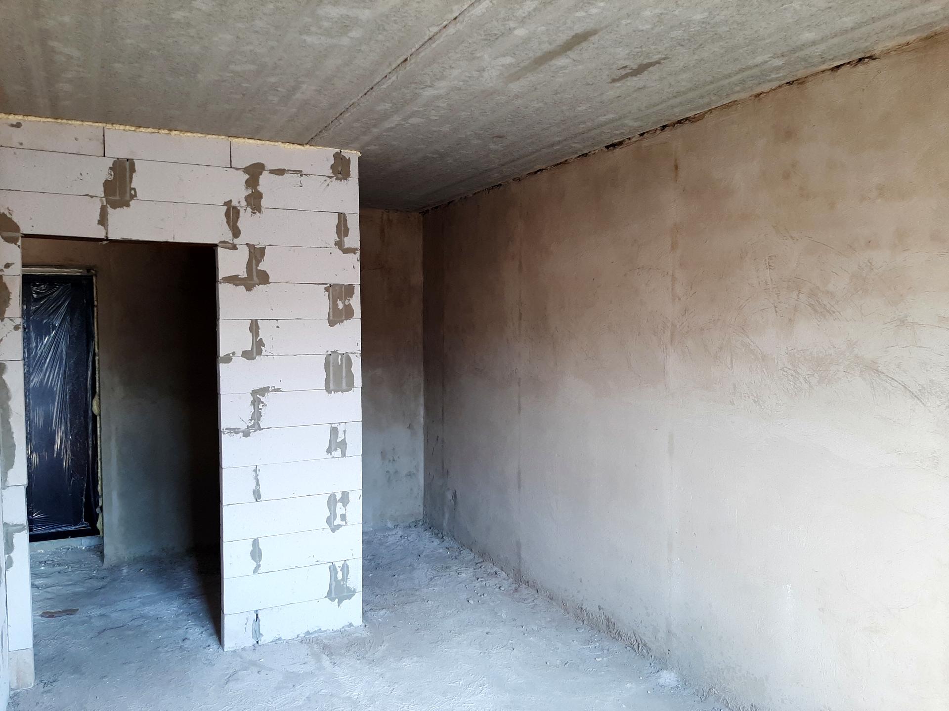 Поштукатурені всі цегляні стіни.