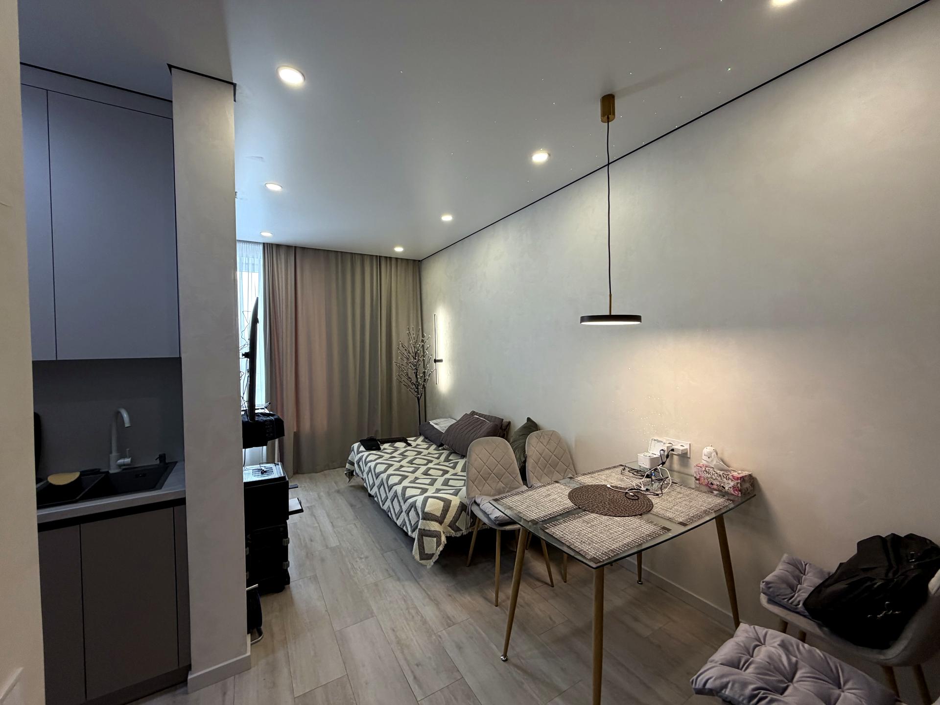 В квартире 1 комната, Технологія будівництва - Цегляна, Тип будинку - Спец. проект. Планировка комнат Студия. В квартире есть Телевизор, Подогрев полов, Стиральная машина, Ванна, Холодильник, Микроволновка, Посудомойная машина. Дом построен в 2021 году. Общее состояние квартиры - С ремонтом. Работает без света - вода. Комиссия за услуги 5 %