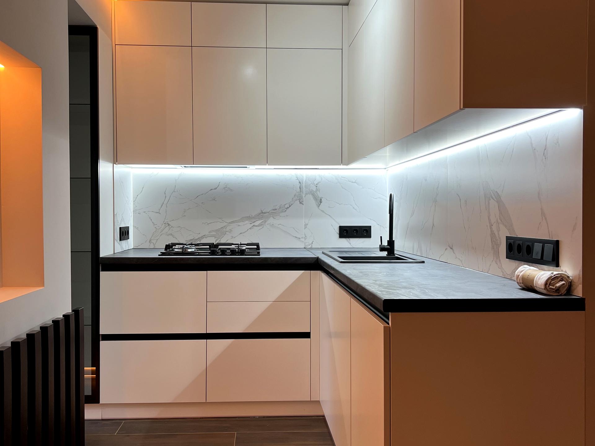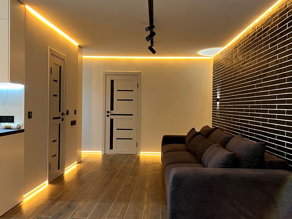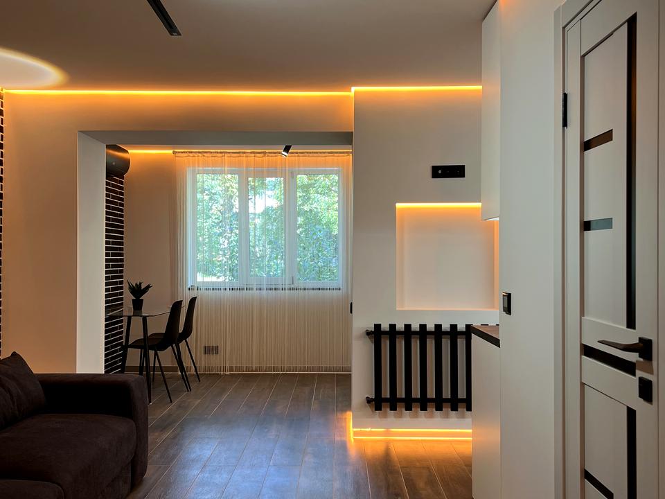 По всій площі квартири тепла підлога та контурна підсвітка. Всі зони в квартирі окремі.