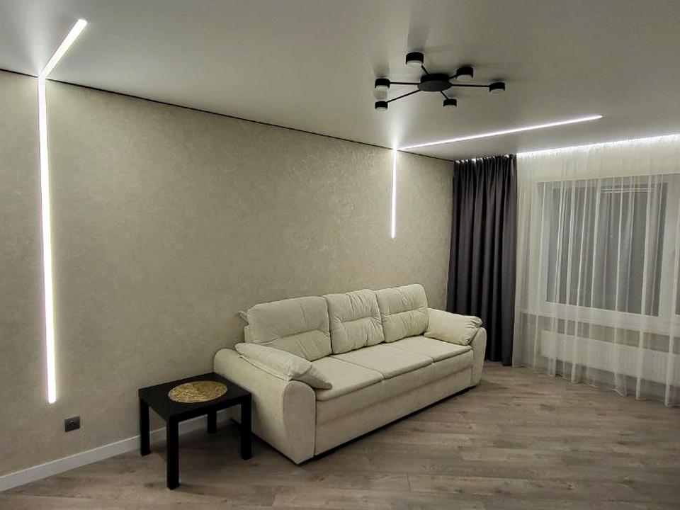 Житло з дизайнерським ремонтом, повністю укомплектоване меблями та технікою: вбудована кухня, холодильник, посудомийна машина, духова шафа, мікрохвильова піч, телевізор. Встановлено двоконтурний котел.