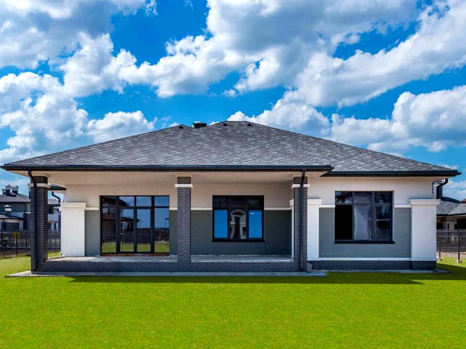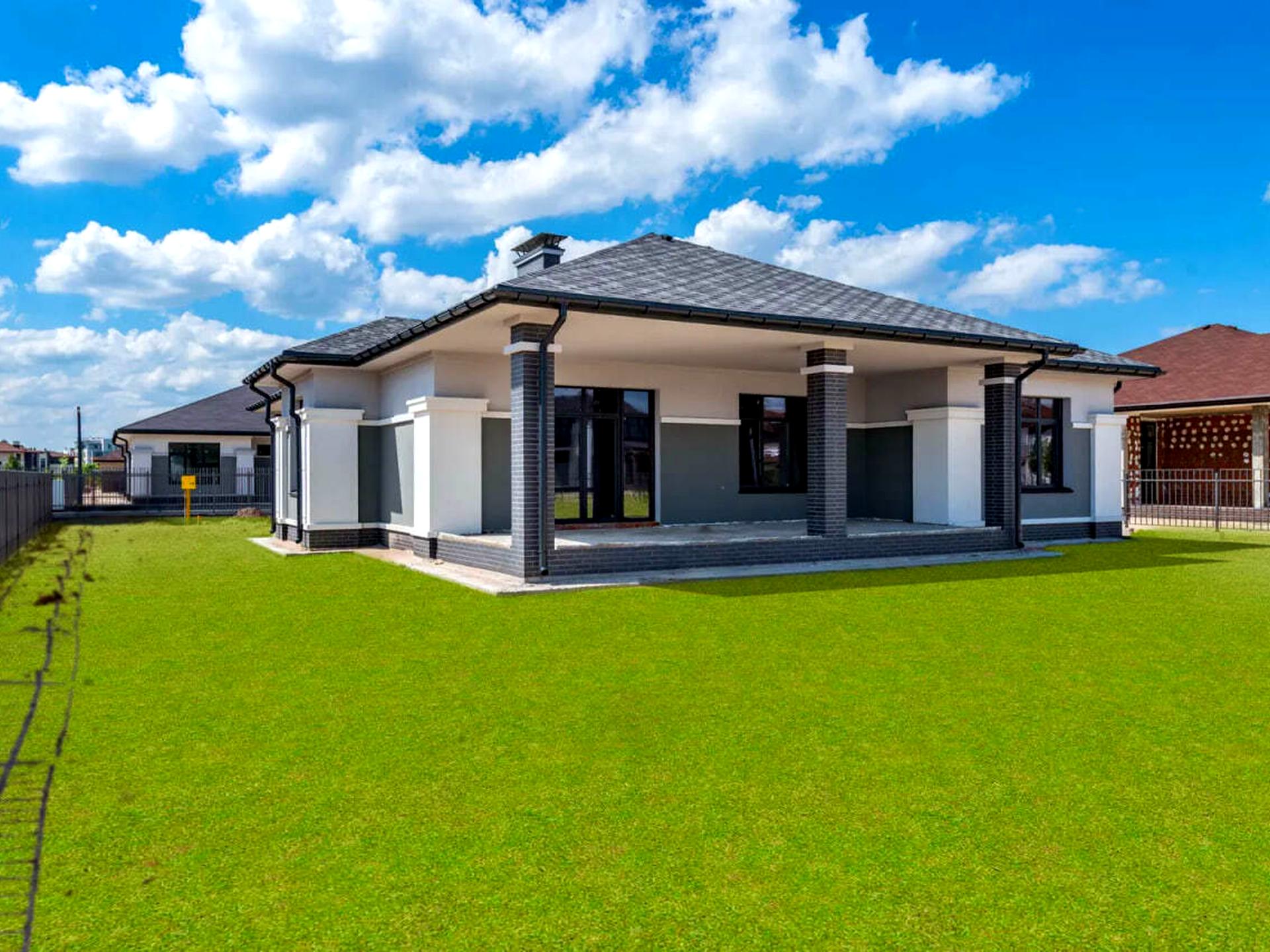 • Будинок продається з сучасним фасадом, відмосткою, парканом і воротами