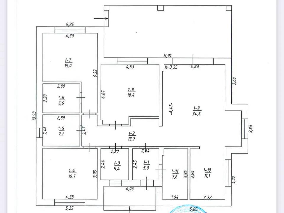 Коттедж, 1 этаж, 3 комнаты. Материал стен – кирпичный, фундамент дома – железобетон. Подъезд к дому – бетон. Площадь участка 12 соток. Высота потолков 3.4 метра. Вид из окон во двор. Планировка комнат Раздельная. В доме 2 раздельных санузла, туалет/ванная/душ. Входная дверь бронированная. Окна металлопластиковые, новые. Покрытие крыши - черепица. Есть ограждение. Своя канализация. Общее состояние дома - Без ремонта. Рядом есть школа, детсад, остановки, супермаркет, речка/озеро, парк. Наружное утепление стен. Владелец соглашается продать по программе єОселя. Без комиссии