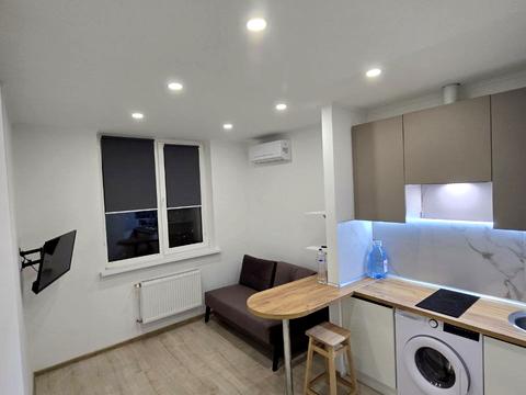 Фото Відповідають У вартість входить власне паркомісце біля будинку. Вишневе, Клубний будинок з цілодобовим відеоспостереженням та гарною інфраструктурою поряд. Будинок знаходиться одразу за заправкою КЛО та ЖК Черрі Таун. У будинку своя котельня та гаряча вода. Заведено оптоволоконний інтернет, який працює без світла. 3-й поверх, без ліфта. Свіжий ремонт. Простора студія з розкладним диваном, телевізором та укомплектованою кухнею. Декілька сценарієм освітлення. Є окремий просторий санвузол та гардеробна. Договір мінімум на 1 рік, без тварин Комісія 25%
