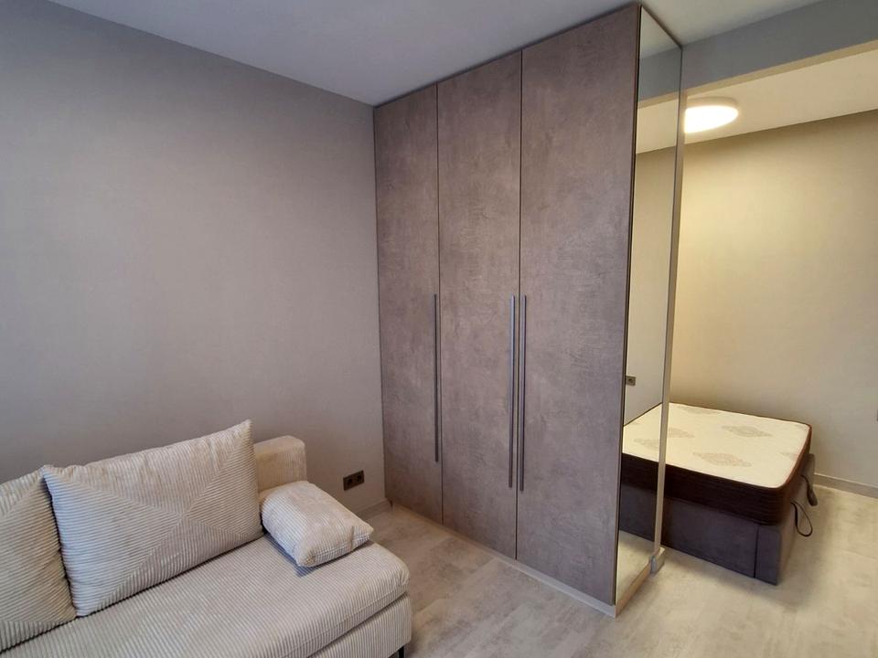 Дві велики шафи в кімнаті та коридорі для зберігання речей, двоспальне ліжко з ортопедичним матрацом та диван.