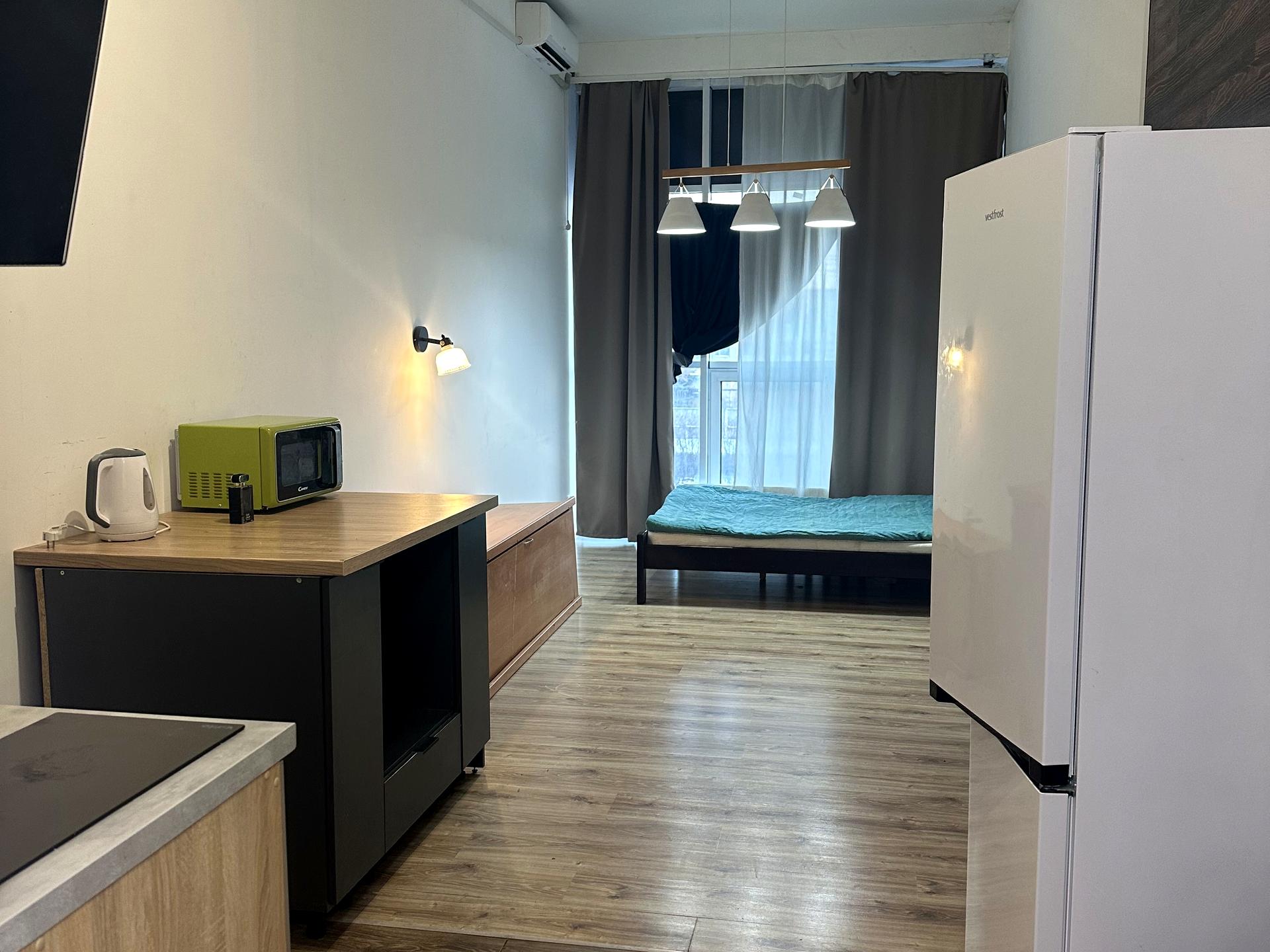 В квартире 1 комната, Технологія будівництва - Монолітно-каркасна, Тип будинку - Спец. проект. Планировка комнат Студия. Газа нет. Балкона нет. В квартире есть Кондиционер, Стиральная машина, Душевая кабина, Холодильник, Микроволновка. Дом построен в 2020 году. Общее состояние квартиры - С ремонтом. Горячая вода - централизованная. Количество санузлов: 1. Интернет беспроводной. Работает без света - вода, отопление, лифт. Без комиссии