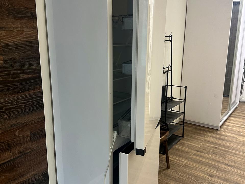 Шафа-купе, двоспальне ліжко, кухонний куточок, холодильник, пральна машинка, електрична поверхня, мікрохвильова піч, витяжка, чайник, кондиціонер.
