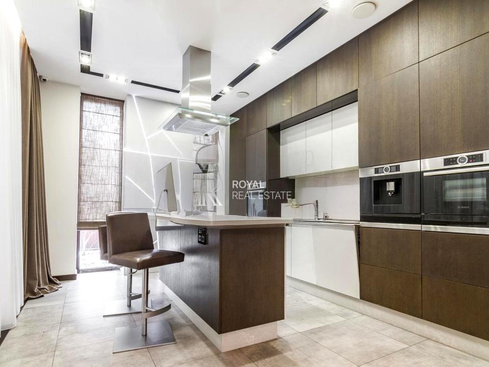 - Перший поверх: велика вітальня, кухня з виходом на мебльовану терасу для BBQ, кабінет, туалетна, гардеробна, пральна кімната, господарська кімната та гараж на 2 авто.