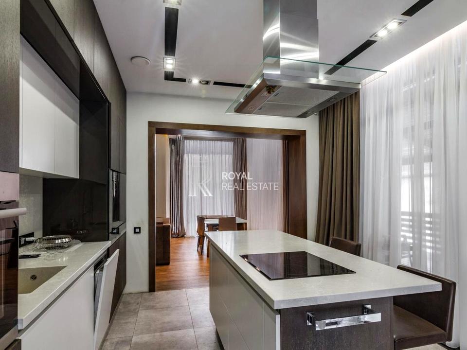 - Перший поверх: велика вітальня, кухня з виходом на мебльовану терасу для BBQ, кабінет, туалетна, гардеробна, пральна кімната, господарська кімната та гараж на 2 авто.