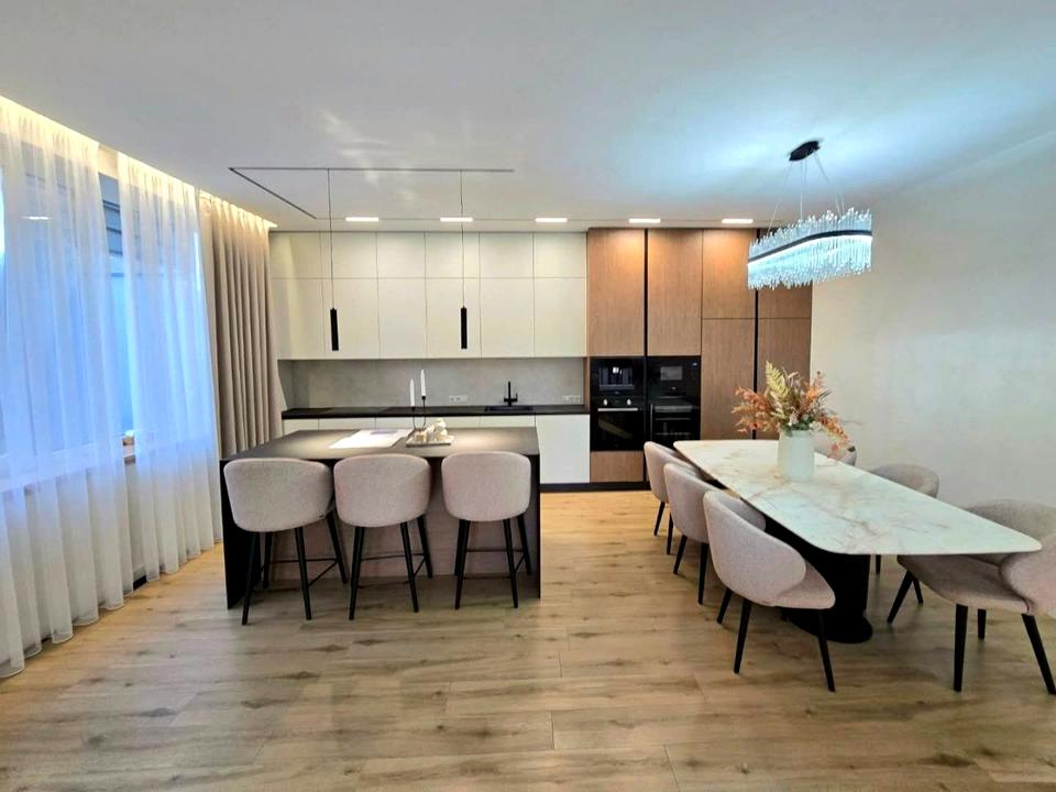 У кухні техніка Franke. Великий холодильник, кавамашина вбудована, холодильник для води, велика посудомийка, кран який підходить для осмоса. В санвузлах інсталяція Grohe. Велика міжкімнатні двері 2.4 м у висоту.