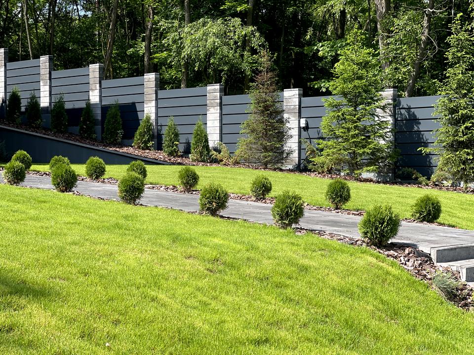 Зроблена відмостка території, автоматичні ворота, паркан.