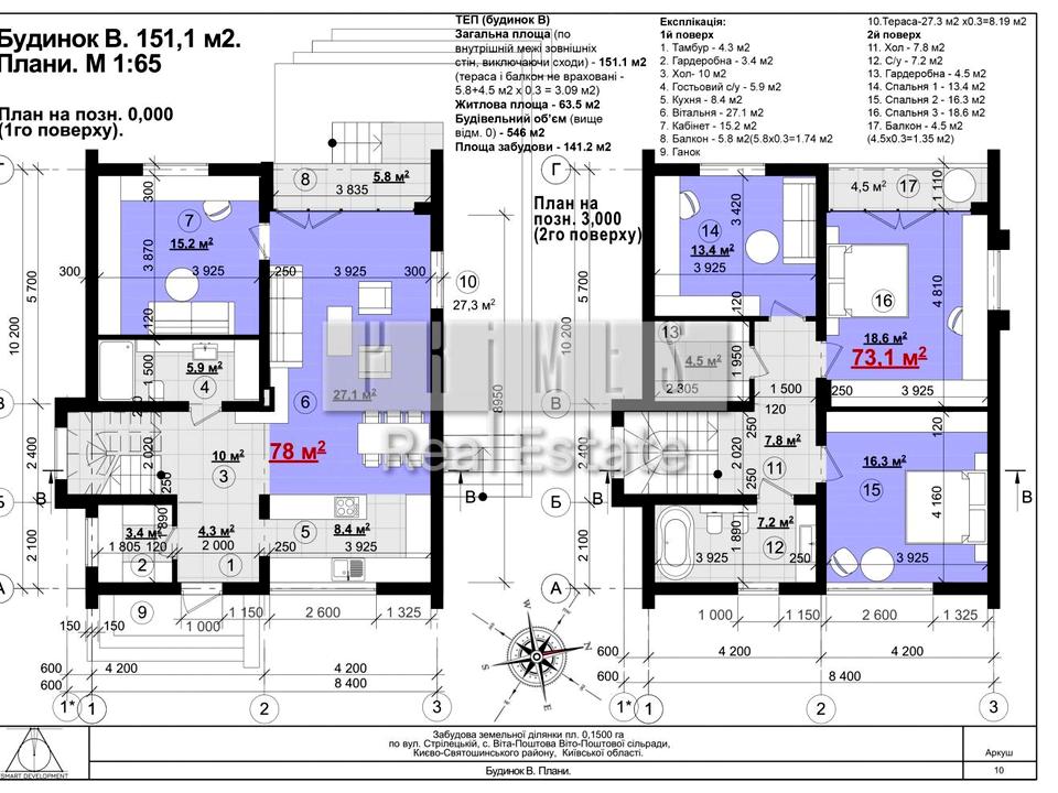 2-поверховий котедж з 5 кімнатами, площею 151 м2 в КМ House 1
