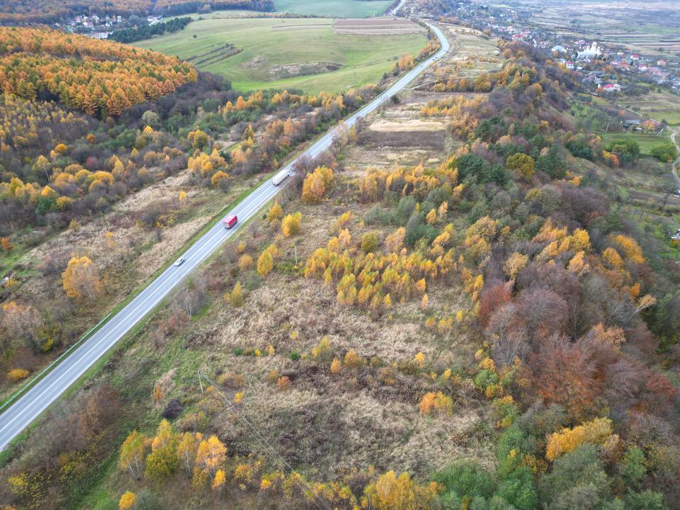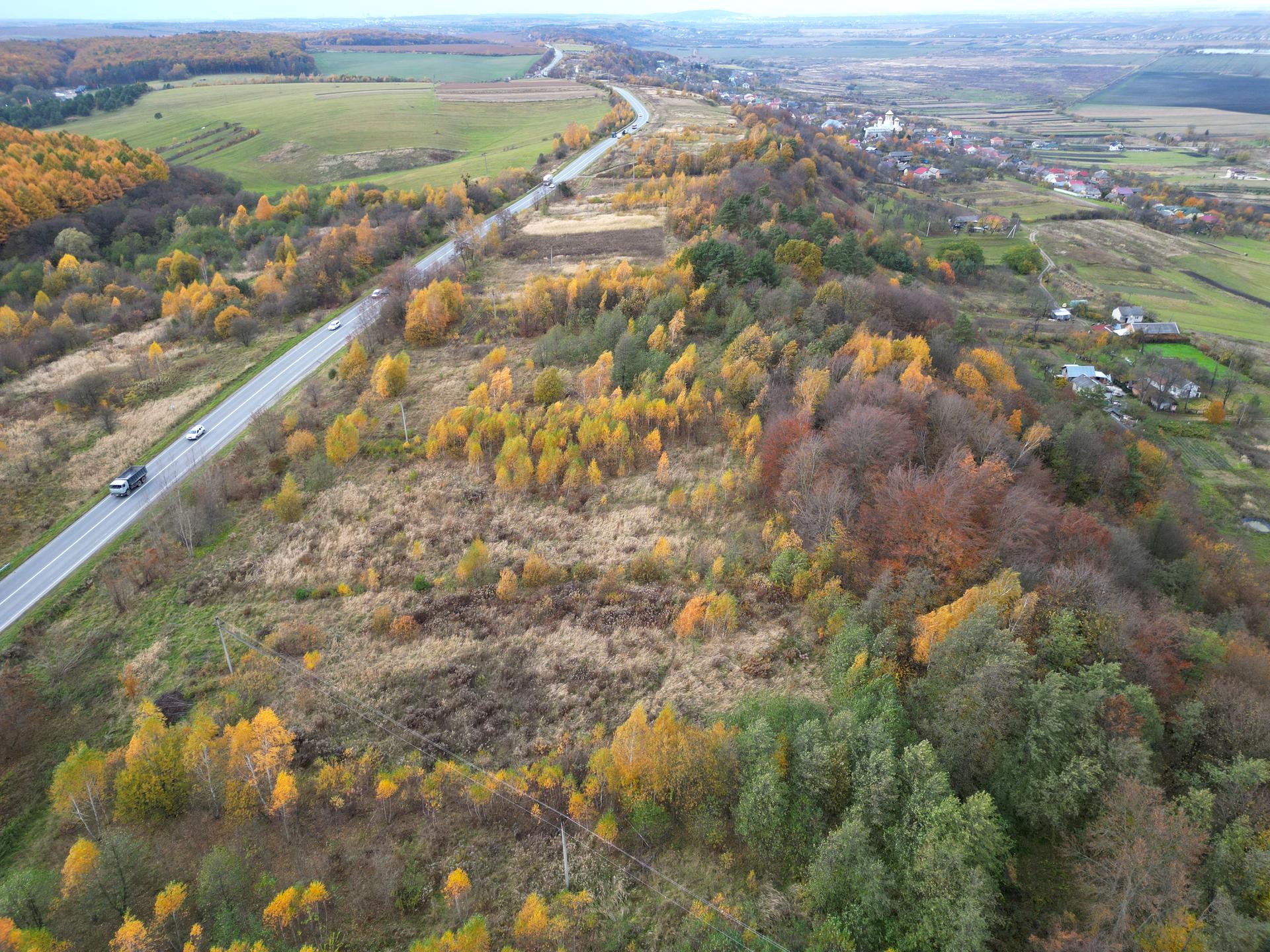 Локація: зразу біля автотраси, поруч ліс, житлові будинки, активна забудова