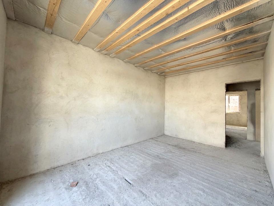 У будинку виконані піщано-вапняна штукатурка та чорнова стяжка, встановлені 6-камерні вікна та броньовані двері, бетонні сходи ведуть на другий поверх, дах утеплений для тепла та затишку. Фасад утеплений 10 см пінопластом, територія огороджена та вимощена бруківкою.