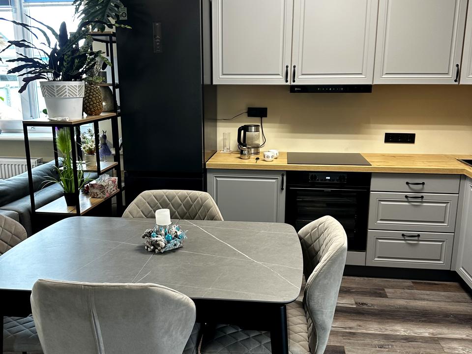 сучасна кухонна зона з новою вбудованою технікою