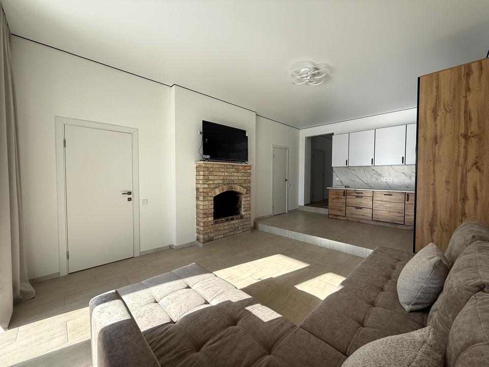 Комфорт у будь-яку пору року забезпечує водяна тепла підлога по всій площі та справжній камін.