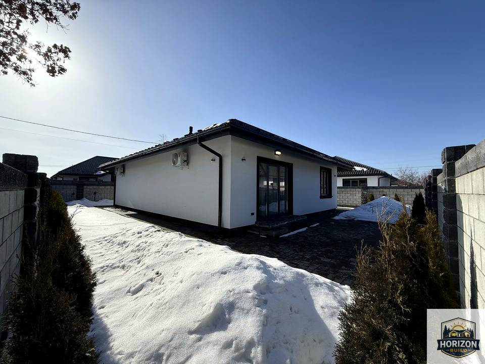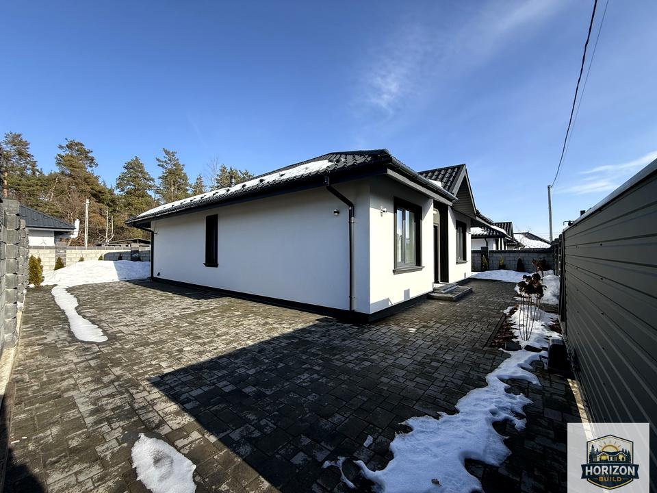 Дом, 1 этаж, 3 комнаты. Материал стен – газоблок, фундамент дома – железобетон, материал перекрытий – дерево. Подъезд к дому – бетон. Площадь участка 4 сотки. Высота потолков 3 метра. Покрытие полов: покрытие полов - ламинат. Тип кухни - кухня-студия. В доме есть Подогрев полов, Кондиционер, Стиральная машина, Душевая кабина, Холодильник, Микроволновка, Посудомойная машина, Автополив, Газон, Терраса. Дом построен в 2025 году. Своя канализация. Общее состояние дома - С ремонтом. Газа нет. Холодная вода - скважина. Горячая вода - электрический бойлер. Отопление котел электрический. Количество санузлов: 1. Покрытие крыши - металлочерепица. Тип автономной электроэнергии: Автономного электричества нет. Владелец соглашается продать по программе єОселя. Владелец соглашается продать по программе єВідновлення. Количество паркомест: 2. Кухонная плита электрическая. Количество спален: 3. Без комиссии