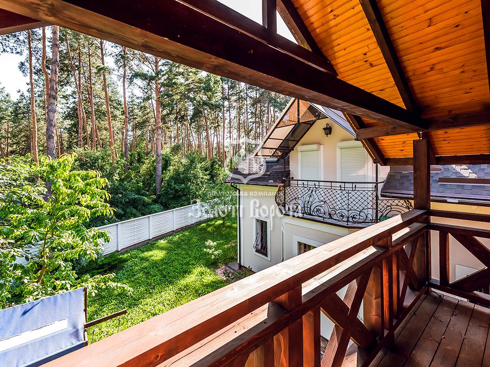 Доглянута ділянка 6 соток з автополивом, де розташовано 2 будинки (основний і гостьовий). Є дитячий майданчик, зона барбекю. Ділянка в оточенні соснового лісу. Встановлена система сигналізації та відеоспостереження.