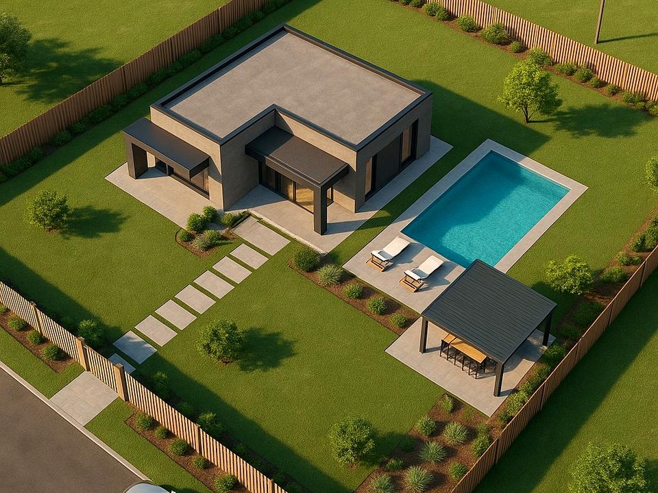 Площа - 25 соток, ділянка з легким природним рельєфом, який створює відчуття простору й дозволяє реалізувати сучасний архітектурний проєкт із рівнями або терасами.