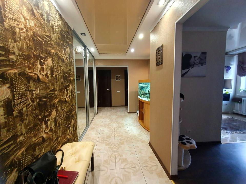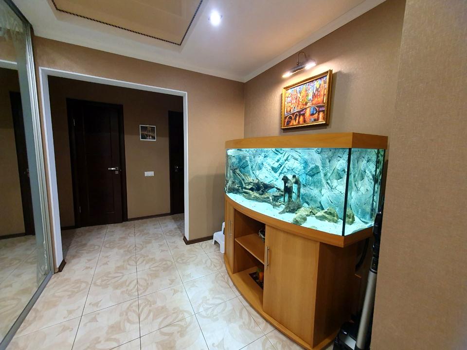 Вбудований кондиціонер (тепло/холод/іонізація повітря), встановлена якісна система охорони ДСО з регулюванням у смартфоні, відеонагляд, датчики руху. В коридорі вбудована велика вмістка гардеробна зі зручними полицями, окремою зоною під верхній одяг та інші речі такими як: пилосос, прасувальна дошка. Натяжна стеля.