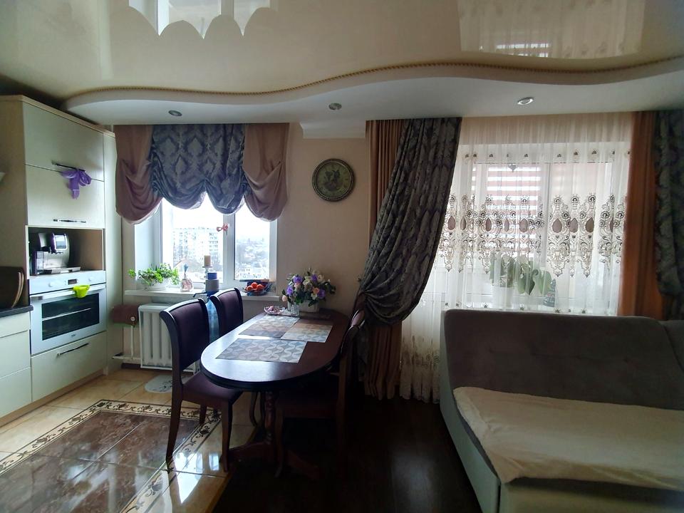 До Вашої уваги на продаж пропонується видова 3-х кімнатна квартира, яка знаходиться на вул. Св. Ріхтера. Шикарне місце розташування поряд школи, садочки в пішій доступності базар «Радуга», дитяча поліклініка, парк. Квартира розташована на 9-тому поверсі 9 поверхового будинку, зверху ще повноцінний технічний поверх. Квартира має 64 кв.м., перепланована в кухню-студію та дві окремі кімнати. Металопластикові вікна з замки «захист», заскленні балкон та лоджія з вбудованими меблями на замовлення та жалюзями день/ніч. Квартира має гарний вид з вікна де можна насолоджуватись сходом та заходом сонця під чашечку кави. На кухні вбудована з якісних матеріалів кухня з всією необхідною технікою світових брендів в тому числі і посудомийною машиною на 12 персон. В квартирі замінена вся проводка на 3-х фазну, з новими лічильниками (газ, світло, вода), має окремі виходи на техніку та безперебійну систему контролю.
