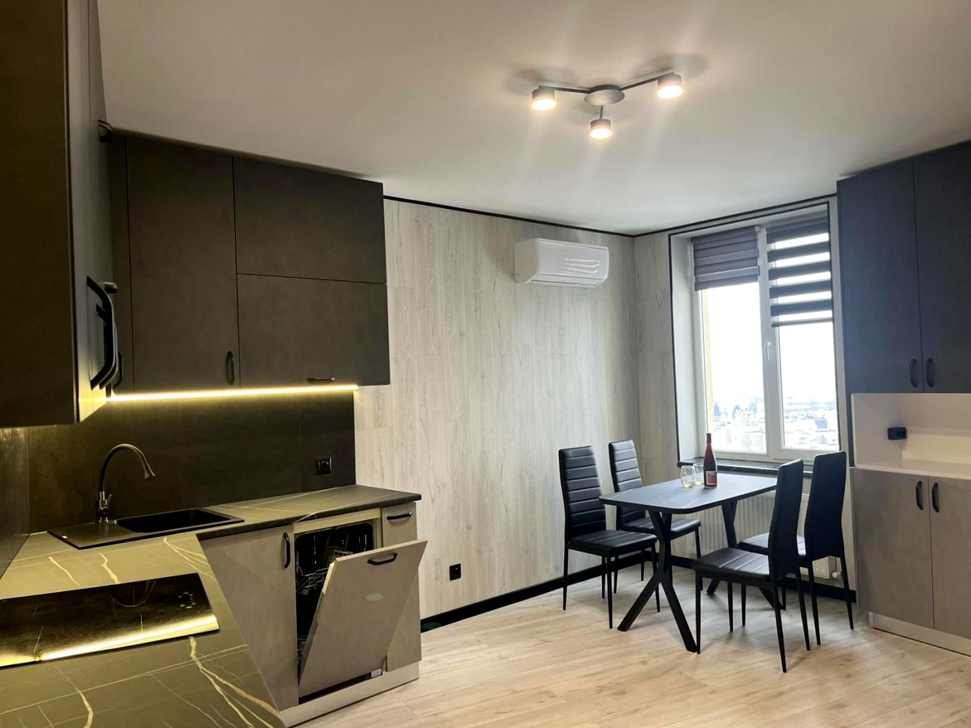 Сучасний євроремонт, повністю укомплектована меблями та технікою: кухня, гардероб, пральна й сушильна машини, посудомийка, бойлер.