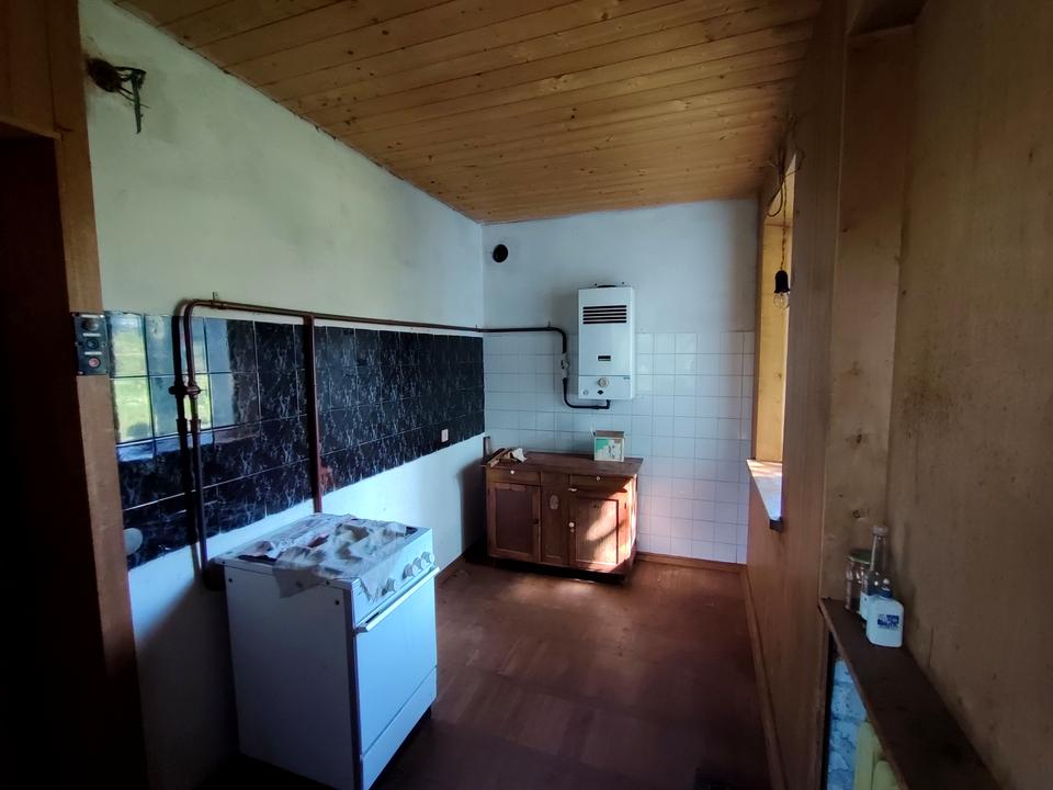 Другий поверх житловий, 4 кімнати та дві кухні, тераса, балкон, санвузол, камін. Газова колонка на теплу воду.