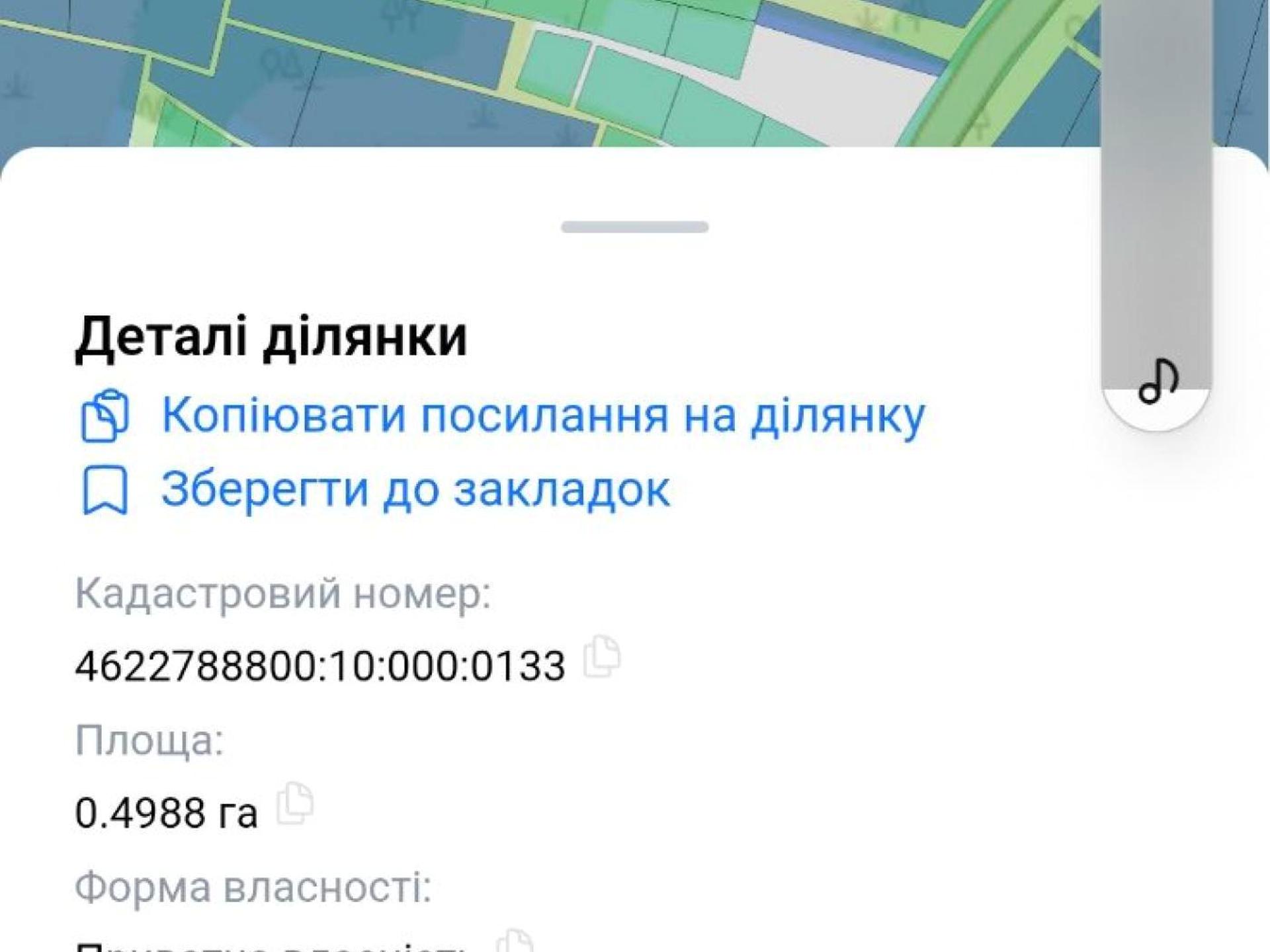 - Площа: 0.4988 га (майже 50 соток)
