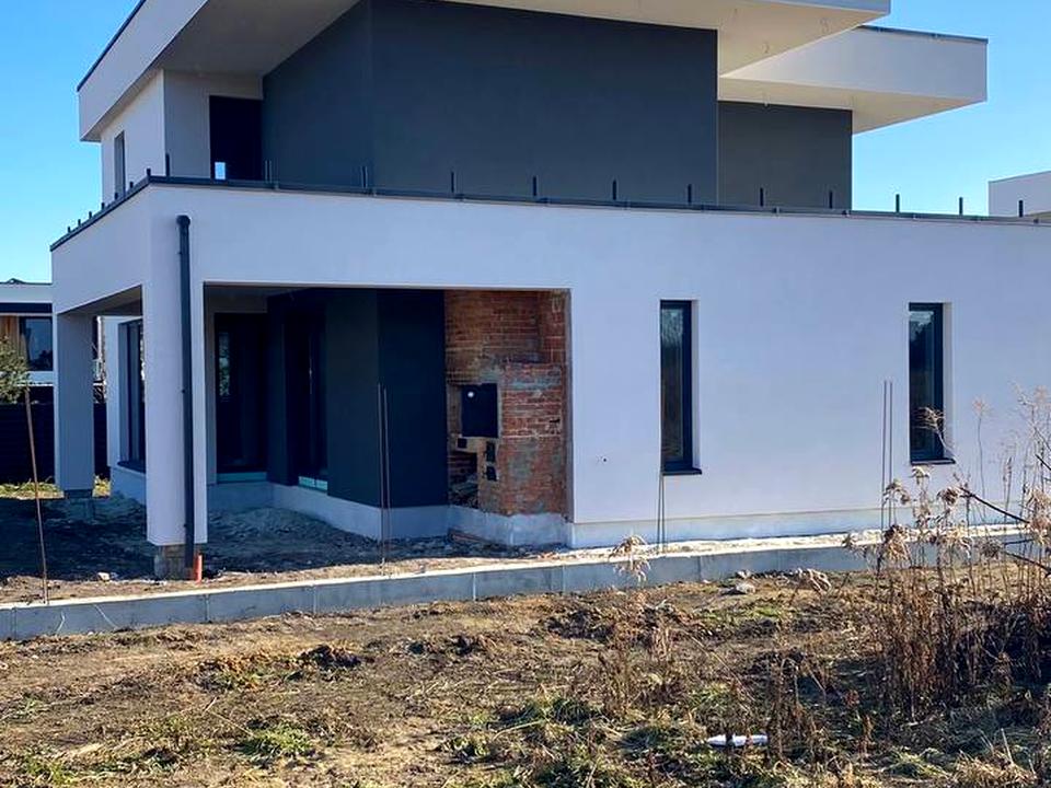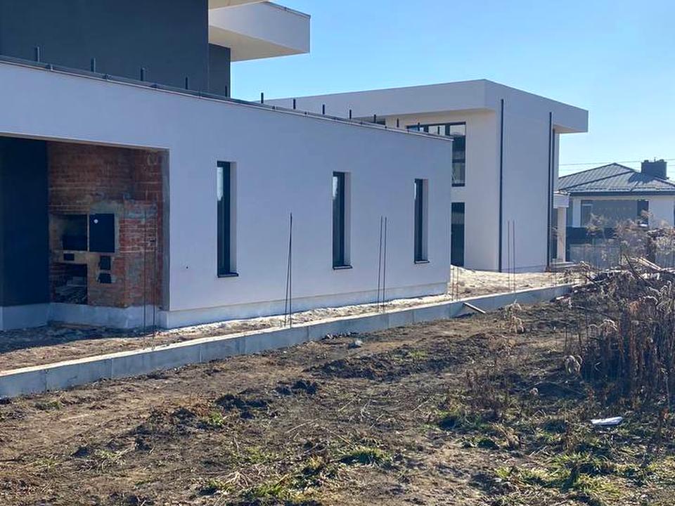 У вартість входить облагородження територіі, двері вхідні броньовані Rodos, алюмінієві - пластикові вікна панорамні, перегородки між сусідами, бруківка, брама.