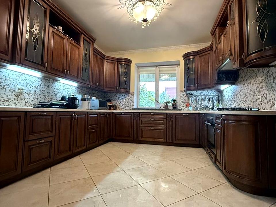 Продається стильний та просторий будинок площею 290,9 м² на доглянутій ділянці 6 соток. Окремо стоячий будинок з якісним авторським ремонтом, дубовими меблями та натуральними матеріалами.