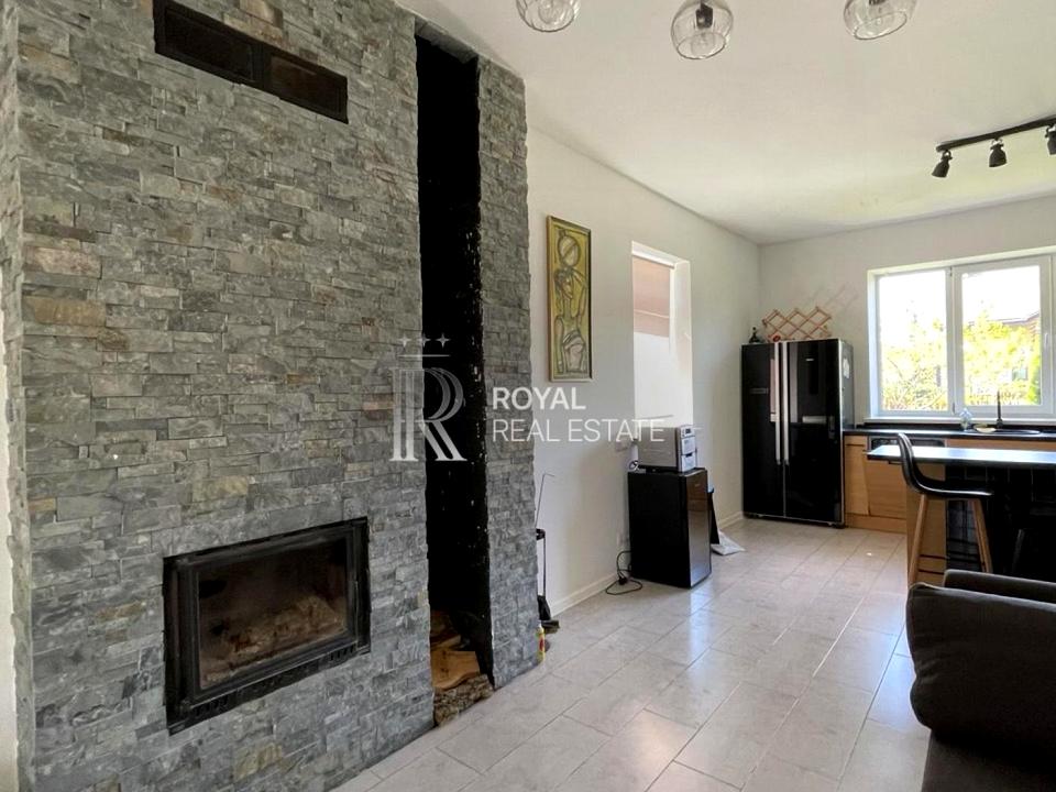 - 1-й поверх - відкритий простір 70 м2: - простора вітальня; - кухня, столова; - вхідна зона; - санвузол (душ); - технічна кімната (під сходами); - камін; - вихід на терасу. Весь перший поверх має підігрів підлоги.