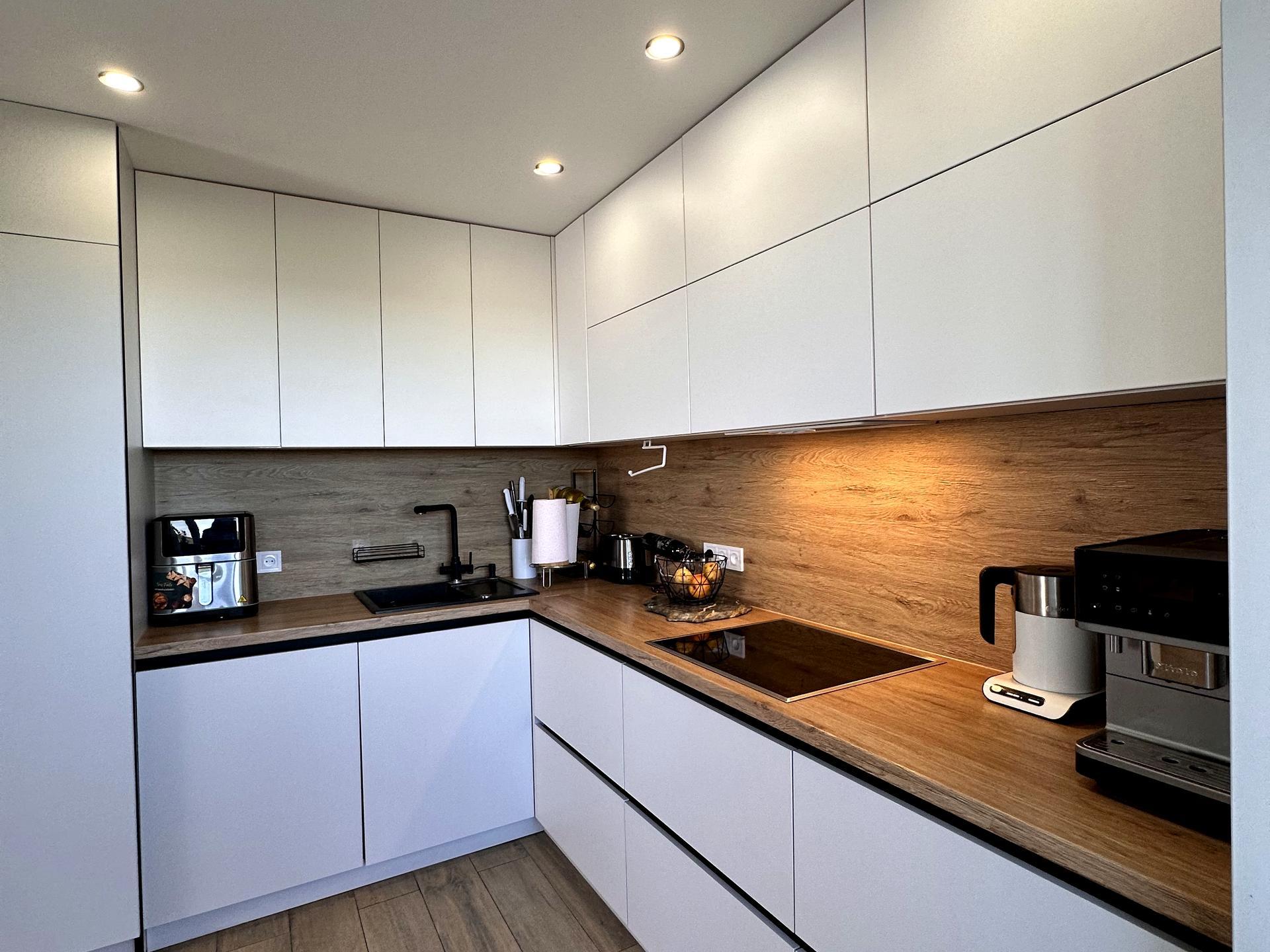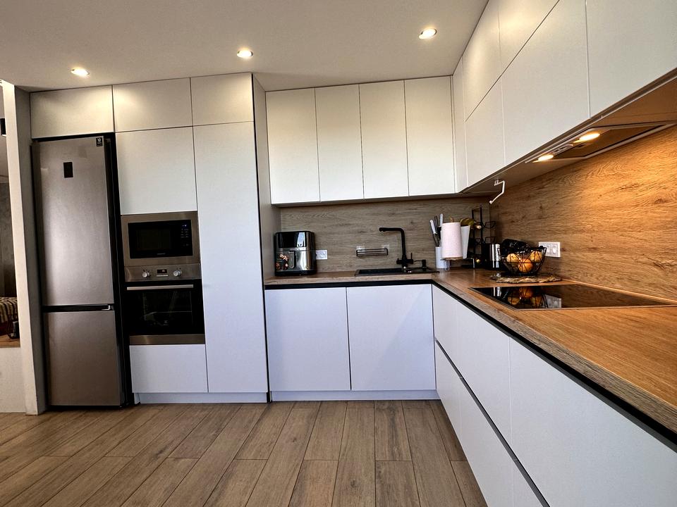 ✔ Вся вмонтована техніка преміум-класу залишається для нових власників: холодильник, духовка, мікрохвильова, варильна поверхня, витяжка, пральна та сушильна машини, посудомийна машинка.