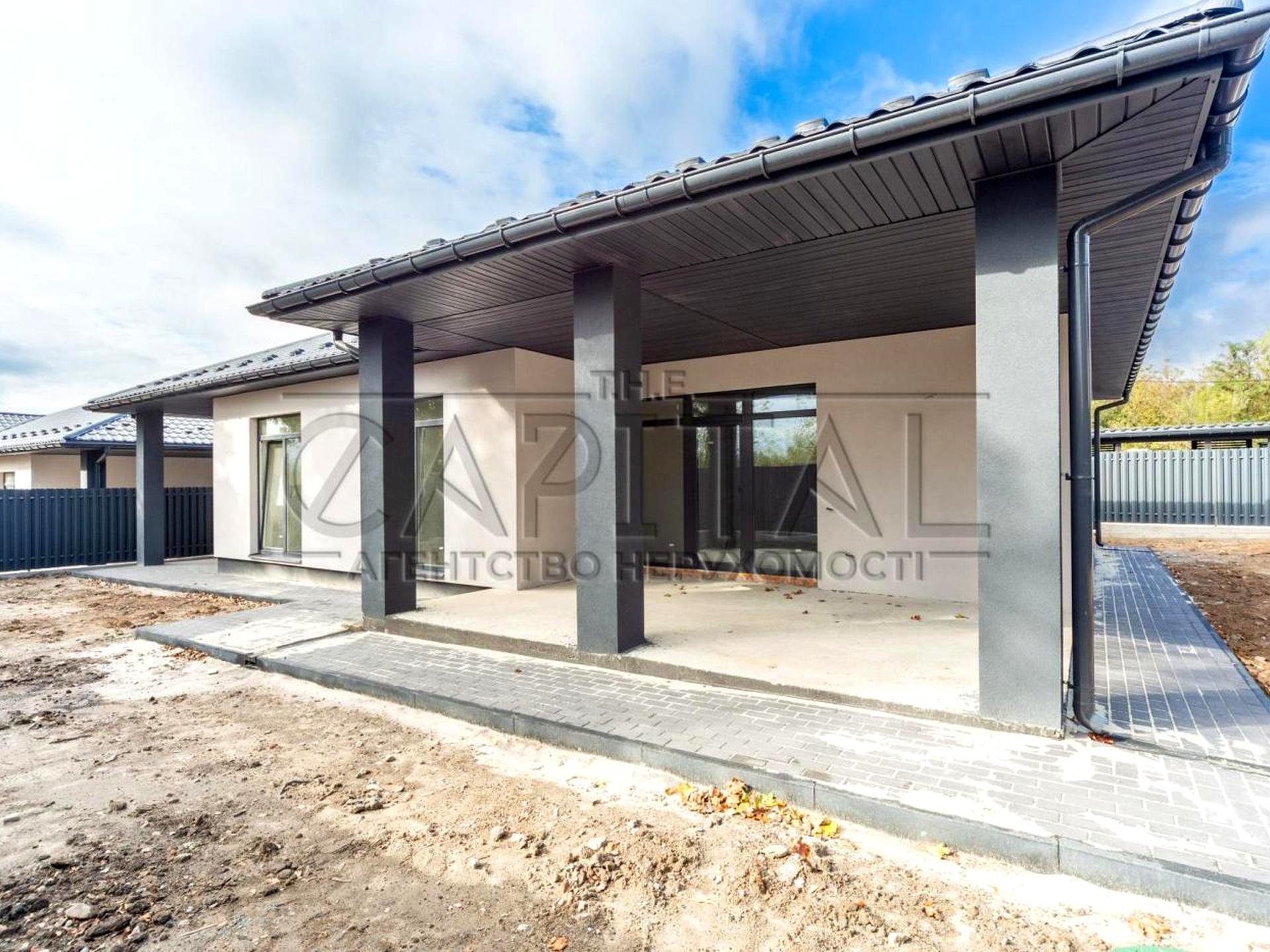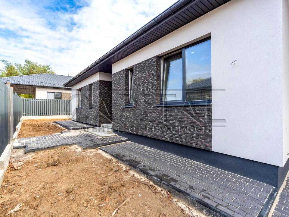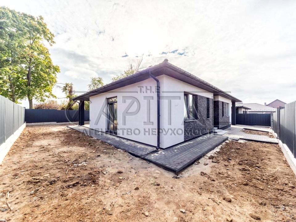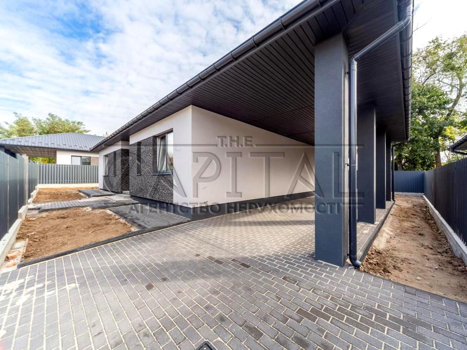 Продається сучасний будинок в с. Шевченково, Бучанського району загальною площею 115 м2. Даний будинок виділяється красивою, складною сучасною архітектурою, терасою яка складає 25 м2 та великими вікнамі в підлогу які наповнюють його природнім світлом. Розташований на ділянці 5 соток, з обробкою фасаду в сучасному стилі, відмосткою навколо будинку, забором, воротами.