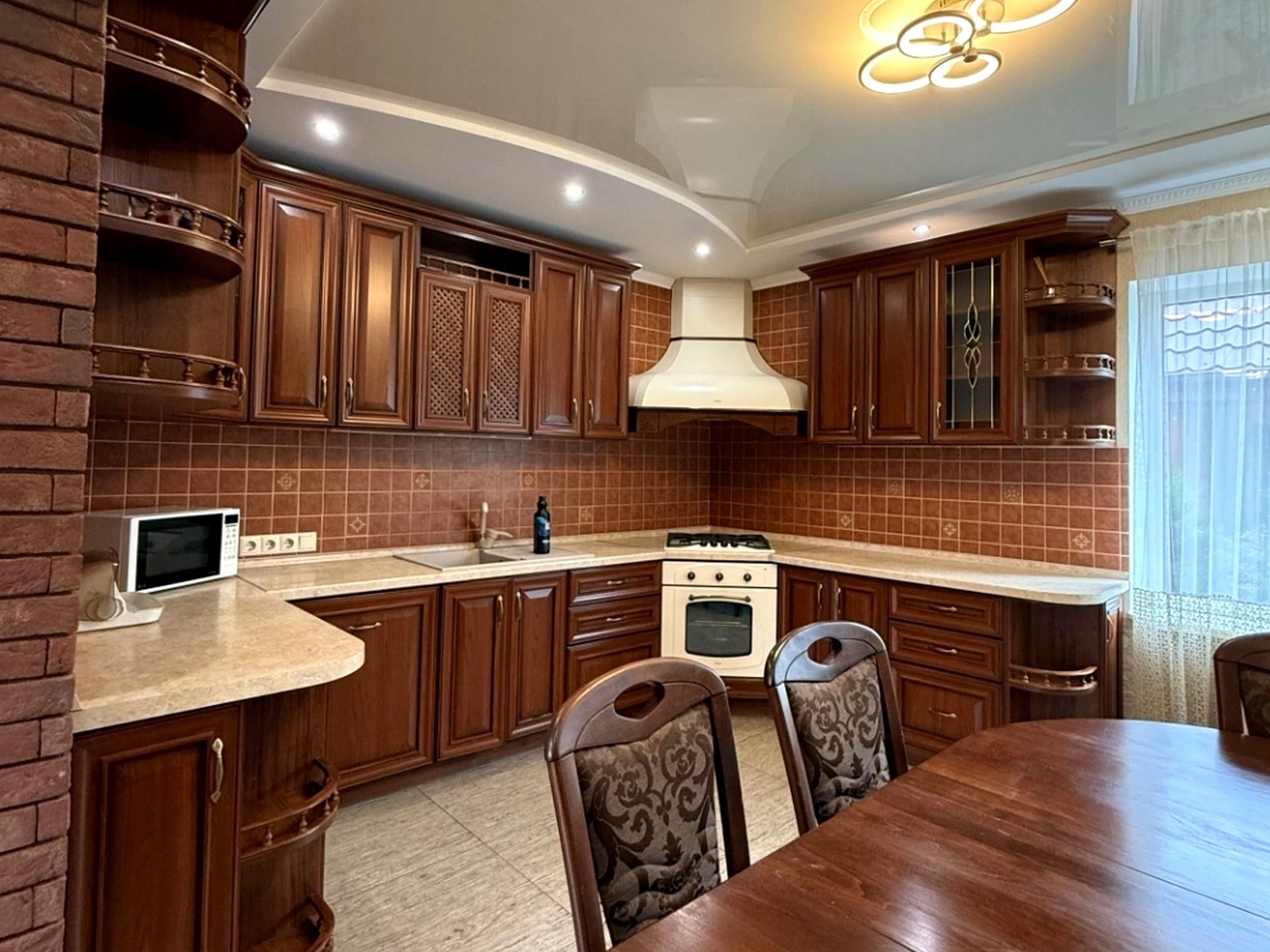 В будинку на першому поверсі простора кухня-вітальня,обладнана всією необхідною технікою ,санвузол та котельня .