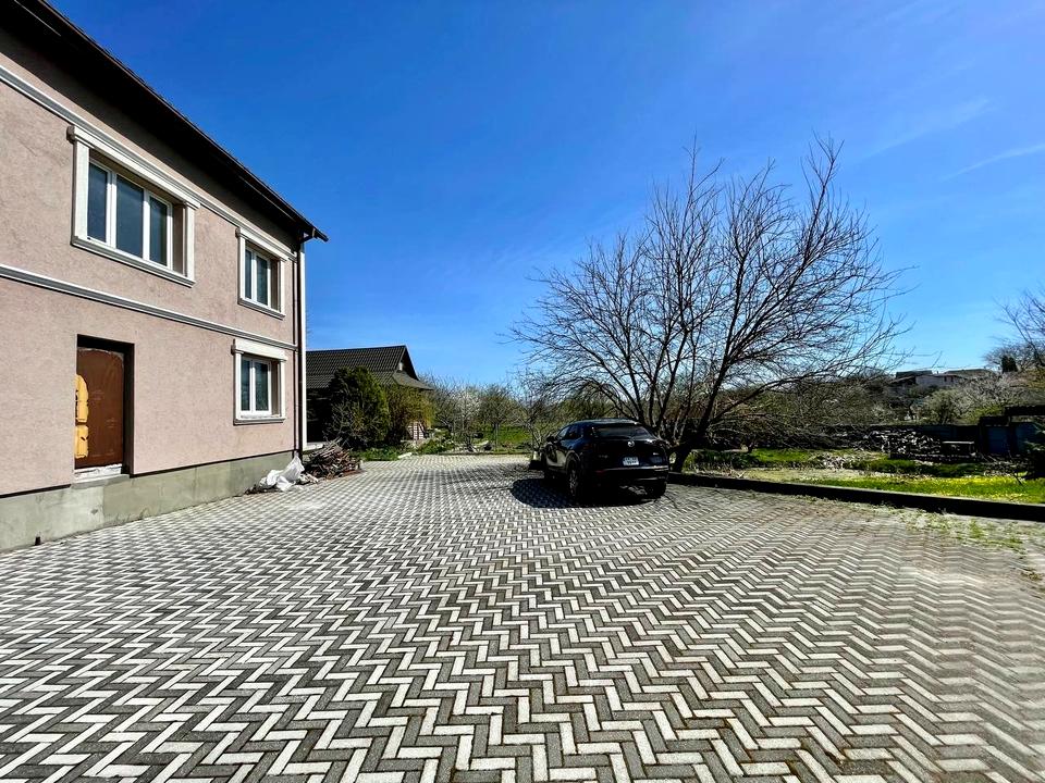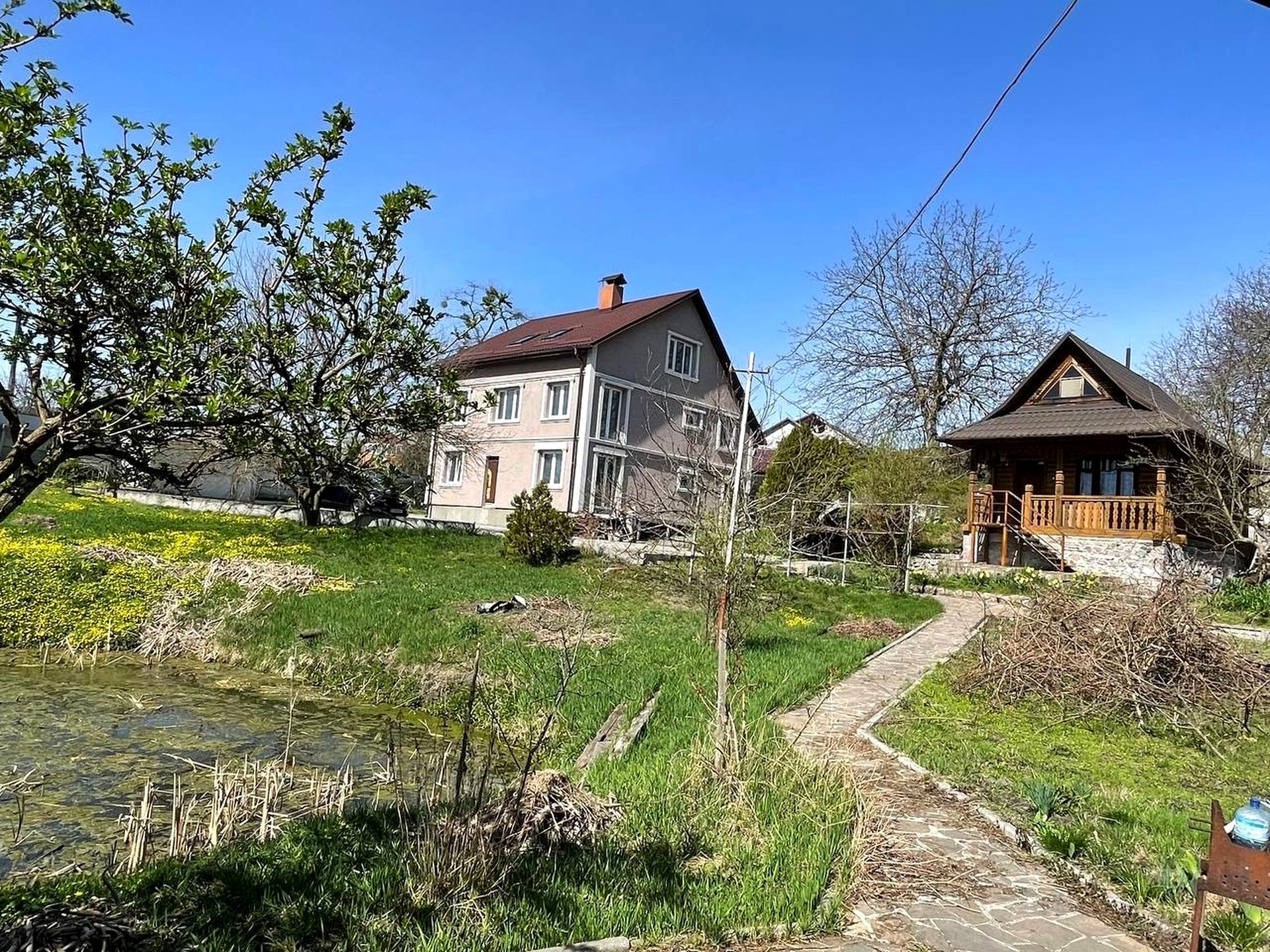 Будинок площею 260 м² на ділянці 36 соток. У дворі є гостьовий дерев’яний будинок 55 м², альтанка 21 м², великий штучний ставок 20×20, а також просторий зелений двір.