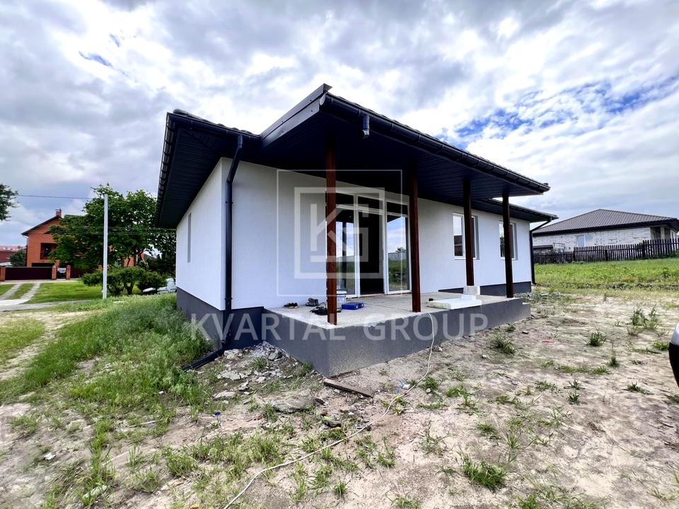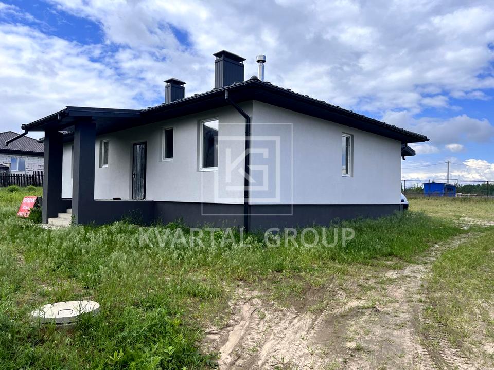 Будинок, 1 поверх, 3 кімнати. Матеріал стін - газоблок. Під'їзд до будинку - асфальт. Площа ділянки 8 соток. Газу немає. Холодна вода - свердловина, гаряча вода - електричний бойлер. Опалення котел електричний. Тип кухні - кухня-студія. Є дах. Немає підвалу. Своя каналізація. Загальний стан будинку - Частковий ремонт. Зовнішнє утеплення стін. Без комісії