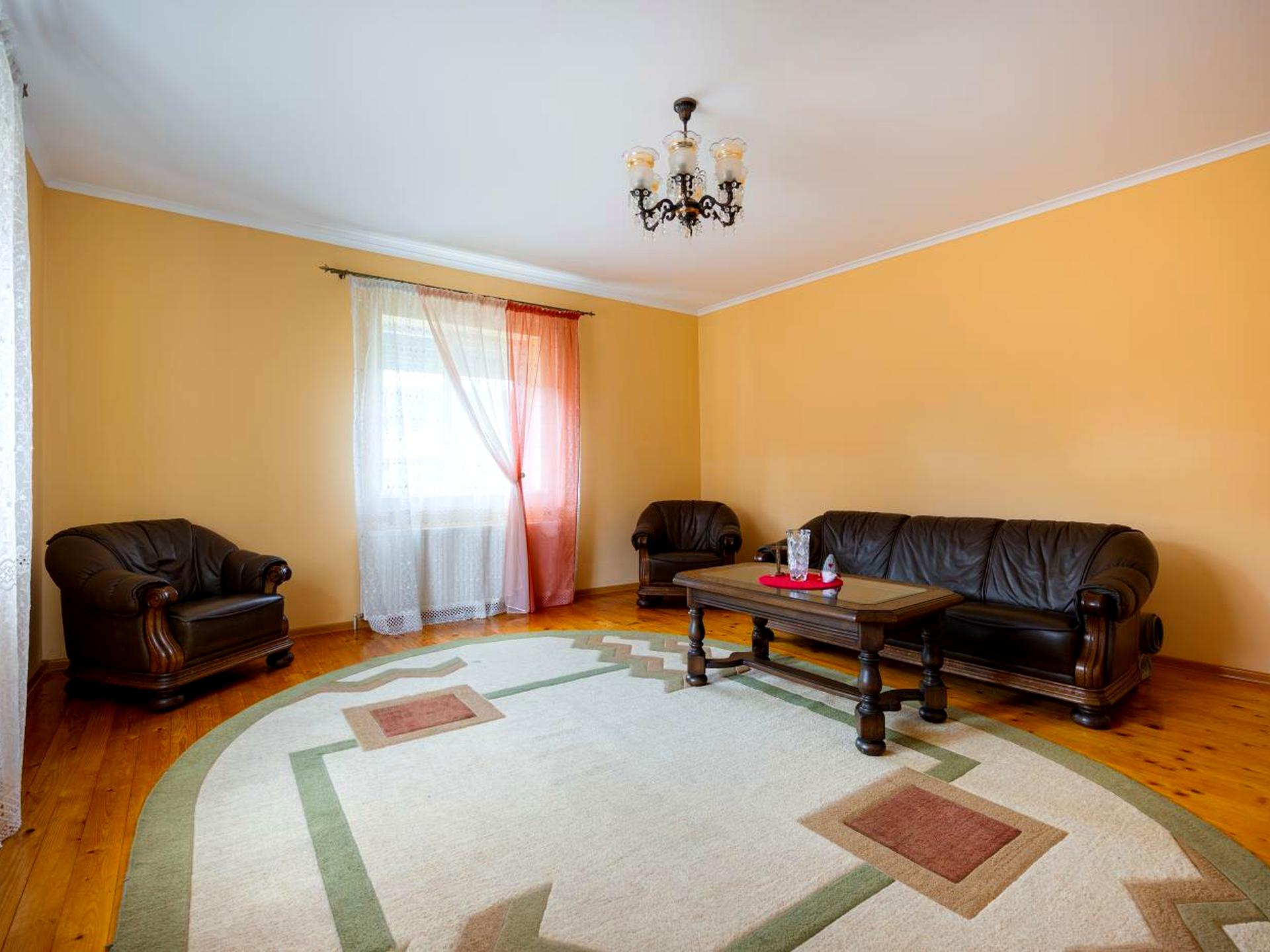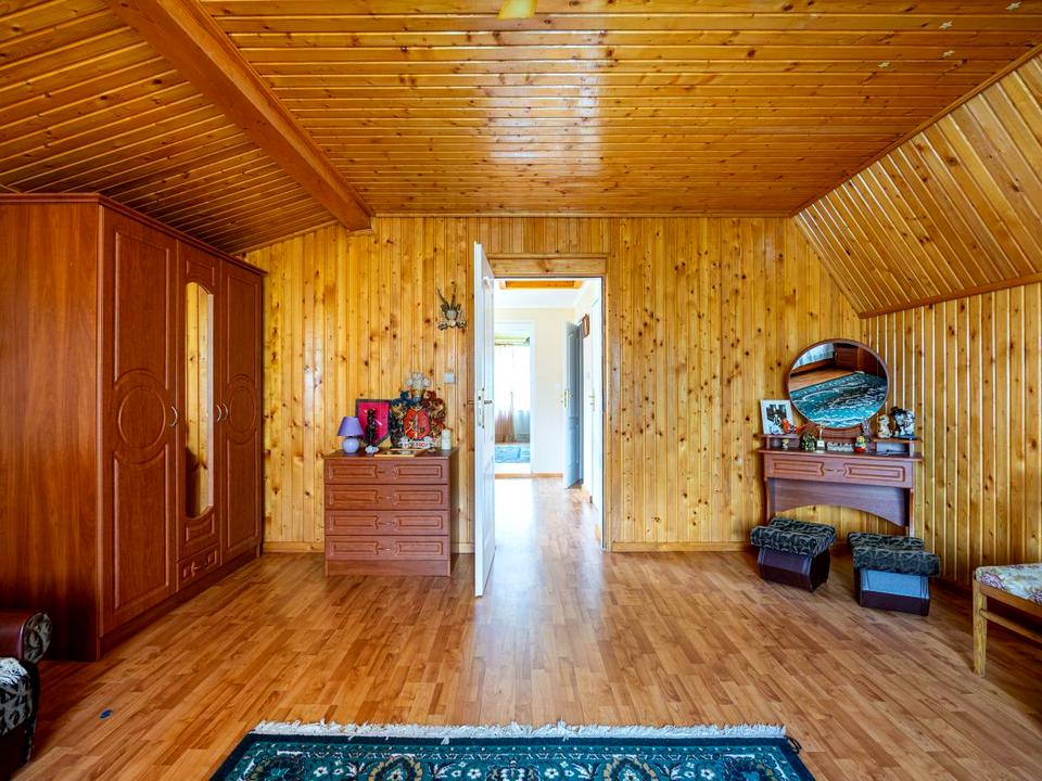 В будинку зроблений євроремонт, наявні меблі та побутова техніка: двоспальне ліжко, два односпальних ліжка, два дивани, дві шафи, два комоди, трюмо, холодильник, морозильна камера, газова плита, витяжка, пральна машина, супутникова тарілка.