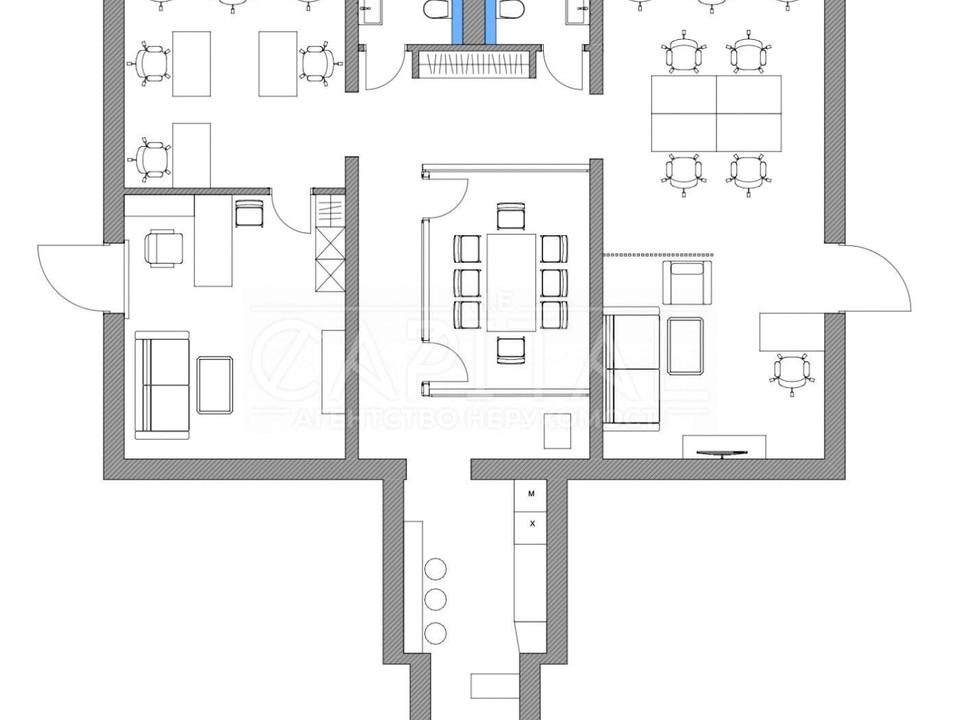 Площа офісу складає 140 квадратних метрів, а розташований він на цокольному поверсі. Простір має два окремі входи, що забезпечує зручність та гнучкість у використанні приміщення.