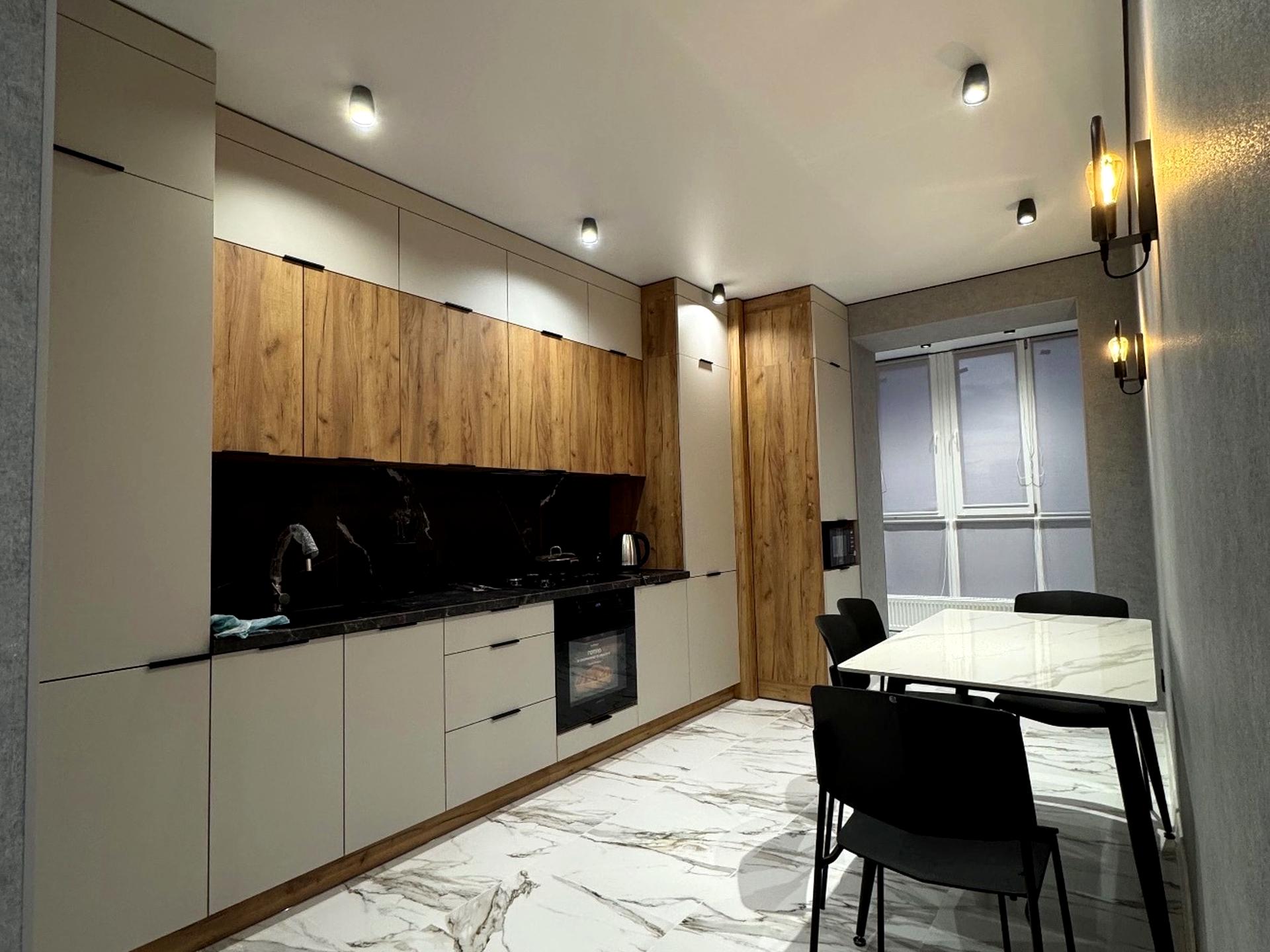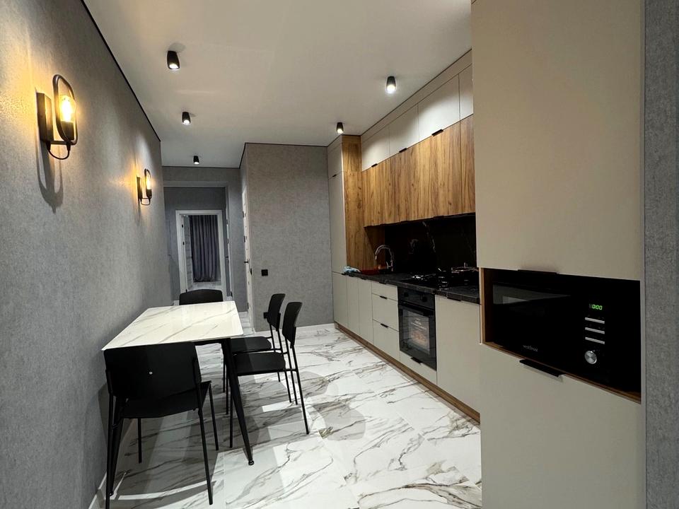 Квартира повністю укомплектована всім необхідним: нові меблі, вбудована побутова техніка, два кондиціонери, пральна машина, тепла підлога, просторий балкон і зручне двоспальне ліжко. Індивідуальне газове опалення забезпечує комфортну температуру в будь-яку пору року.