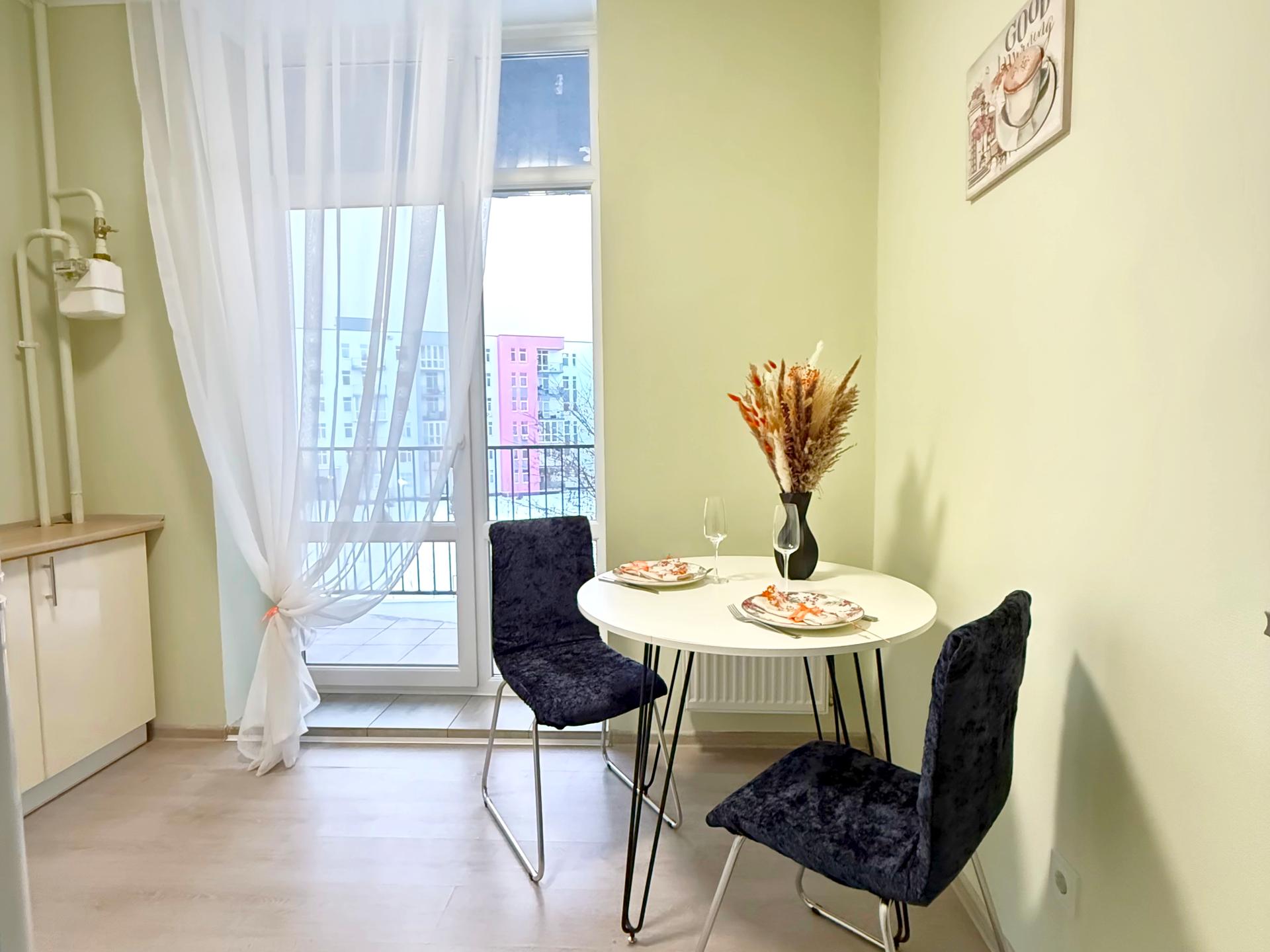 кухня окрема з обідньою зоною та виходом на терасу, яку при бажанні можна облаштувати в затишну зону відпочинку;