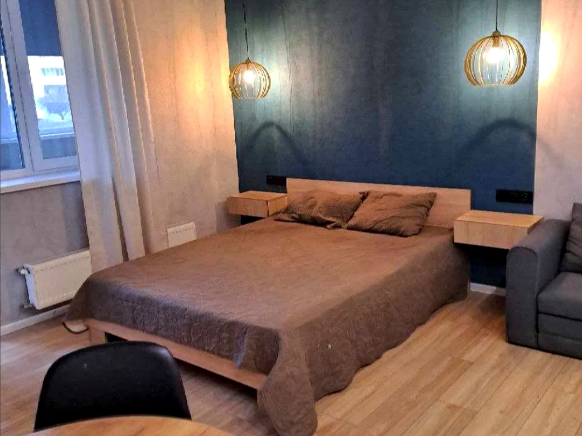В квартирі 1 кімната, Тип будинку - Спец. проект. Є балкон. Будинок побудований в 2021 році. Загальний стан квартири - З ремонтом. Кількість санвузлів: 1. Тип кухні - кухня-студія. Кількість спален: 1. Комісія за послуги 50 %